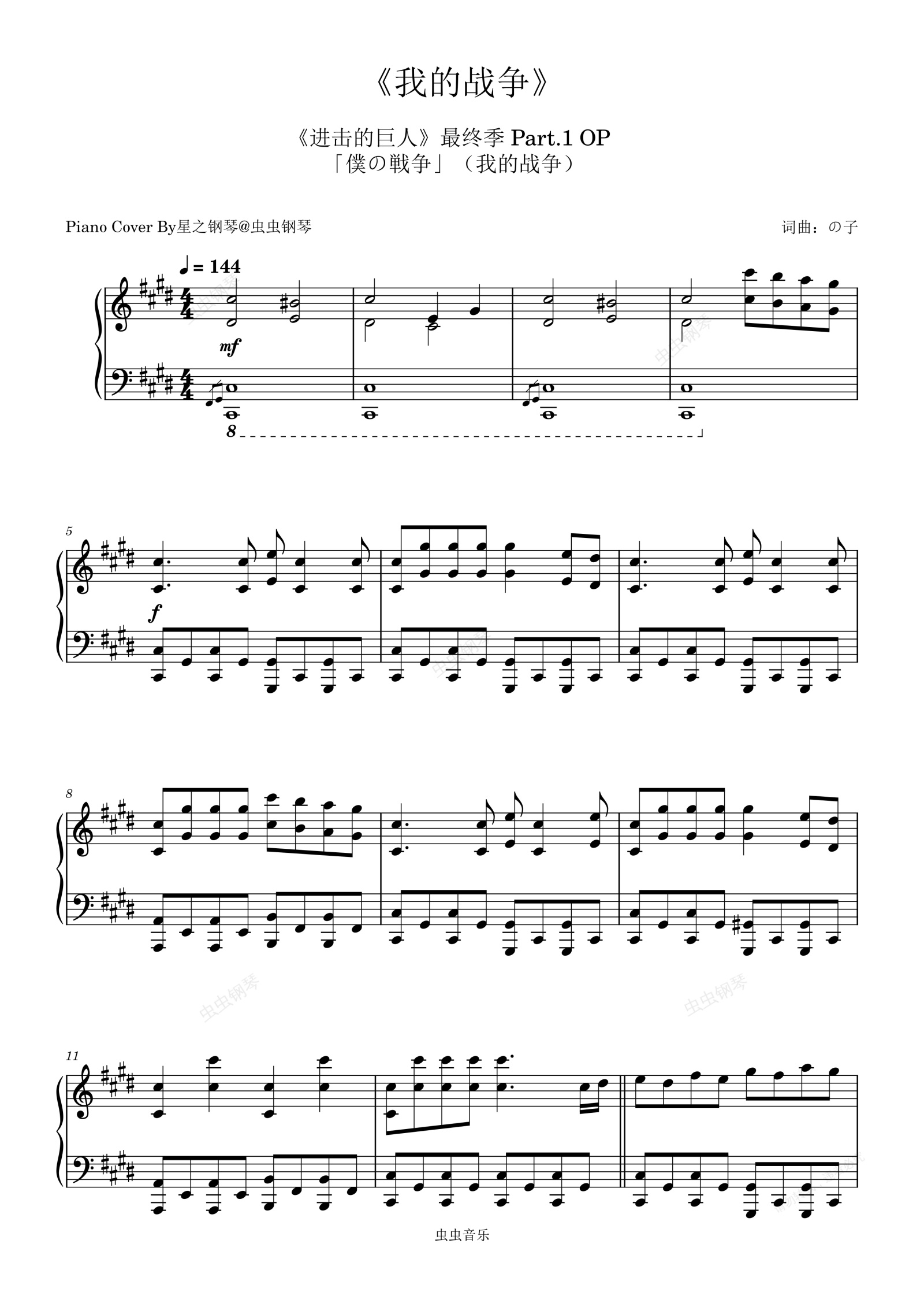 钢琴谱:【进击的巨人】第四季OP《我的战争》钢琴独奏版~星之钢琴~