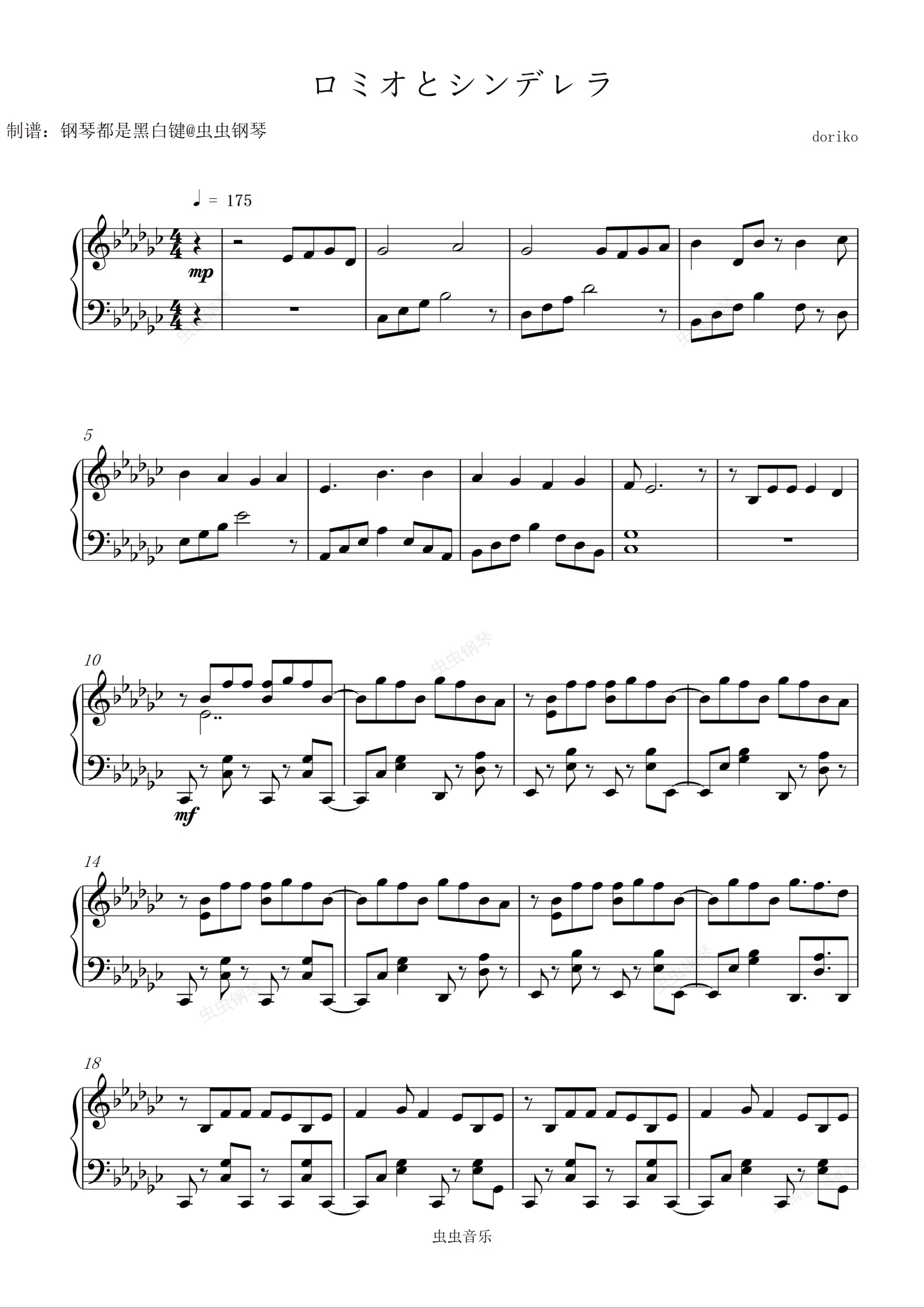 钢琴谱:【初音ミク】ロミオとシンデレラ(罗密欧与辛德瑞拉)【『世界计划 多彩舞台』收录曲】