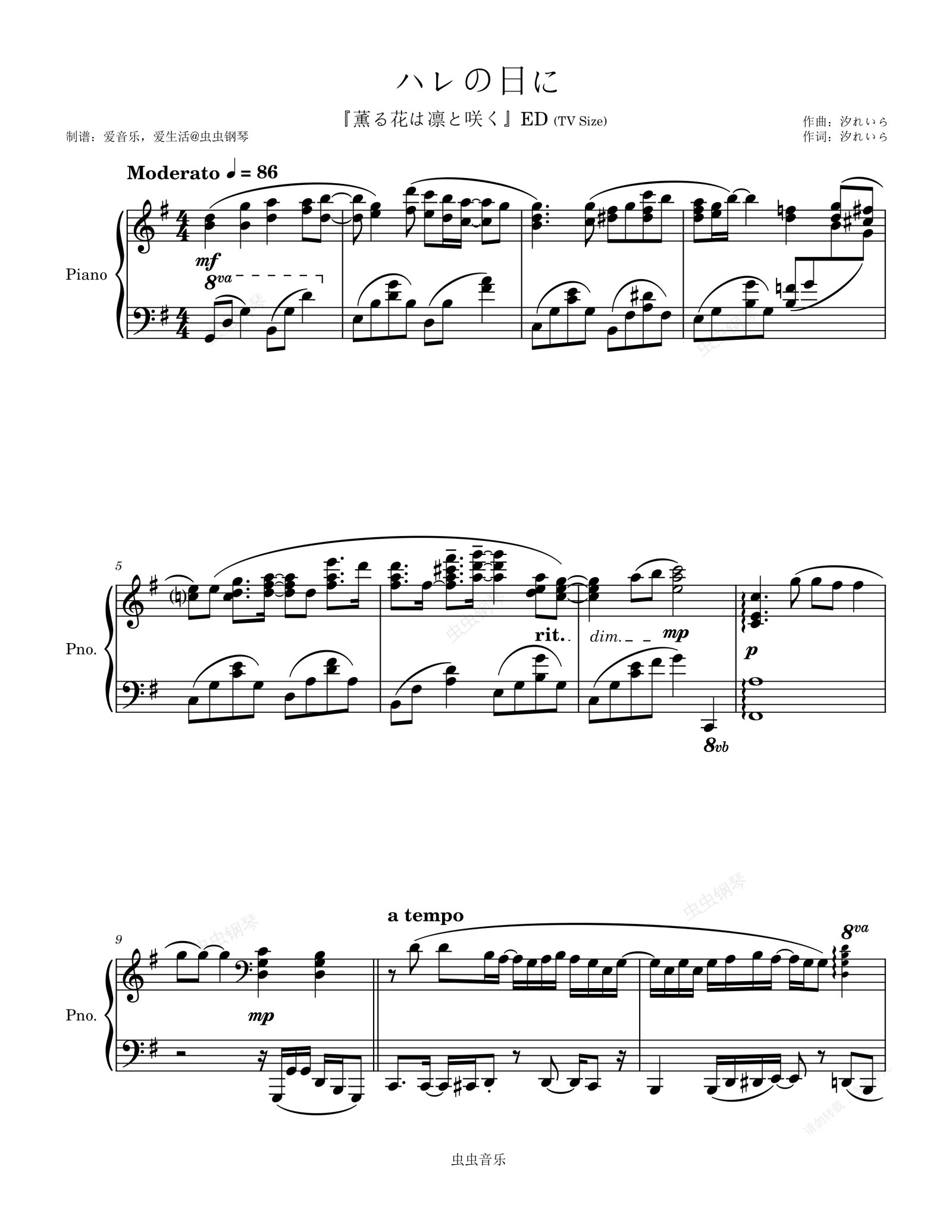 钢琴谱:ハレの日に《熏香花朵凛然绽放》ED