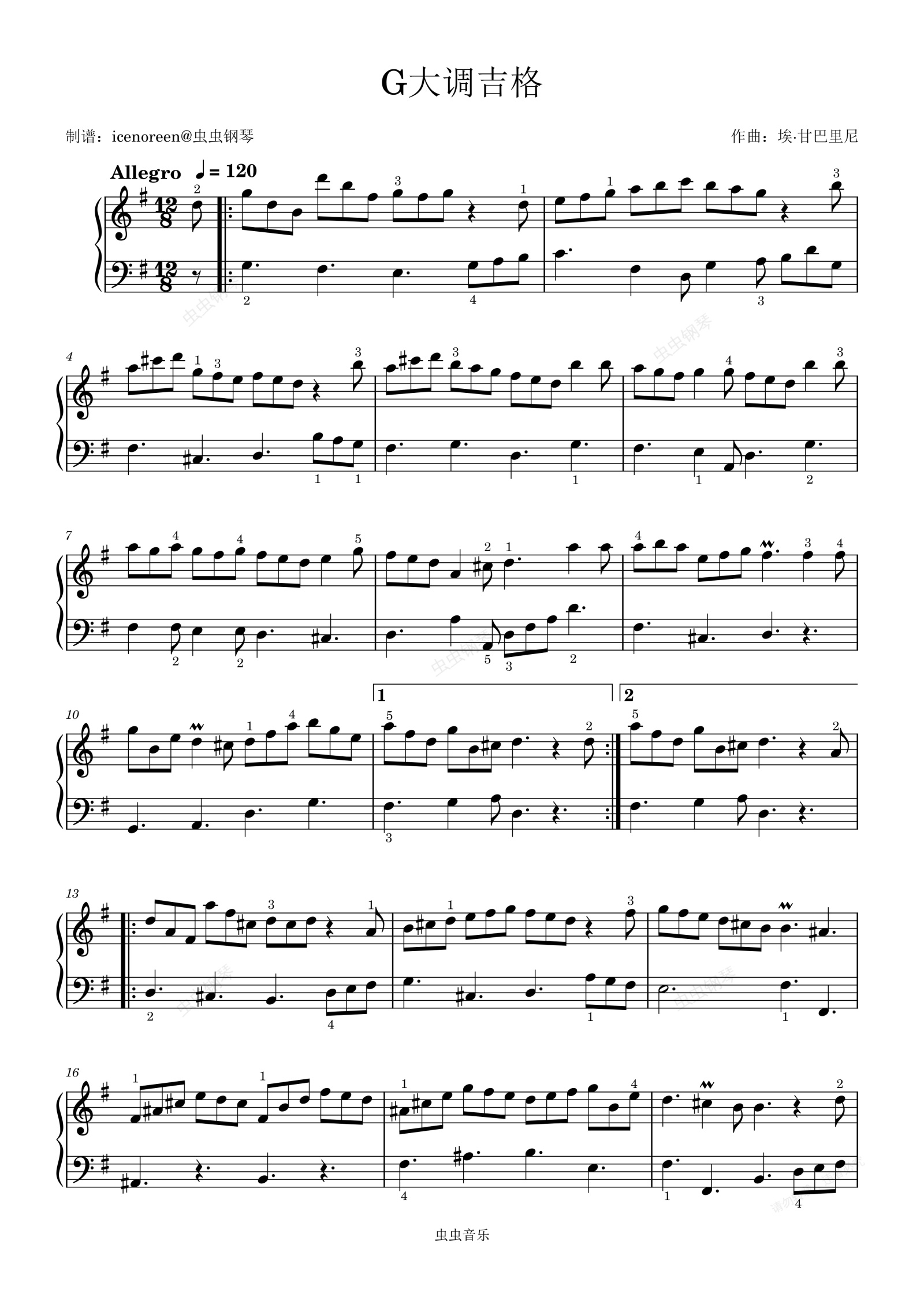 钢琴谱:G大调吉格