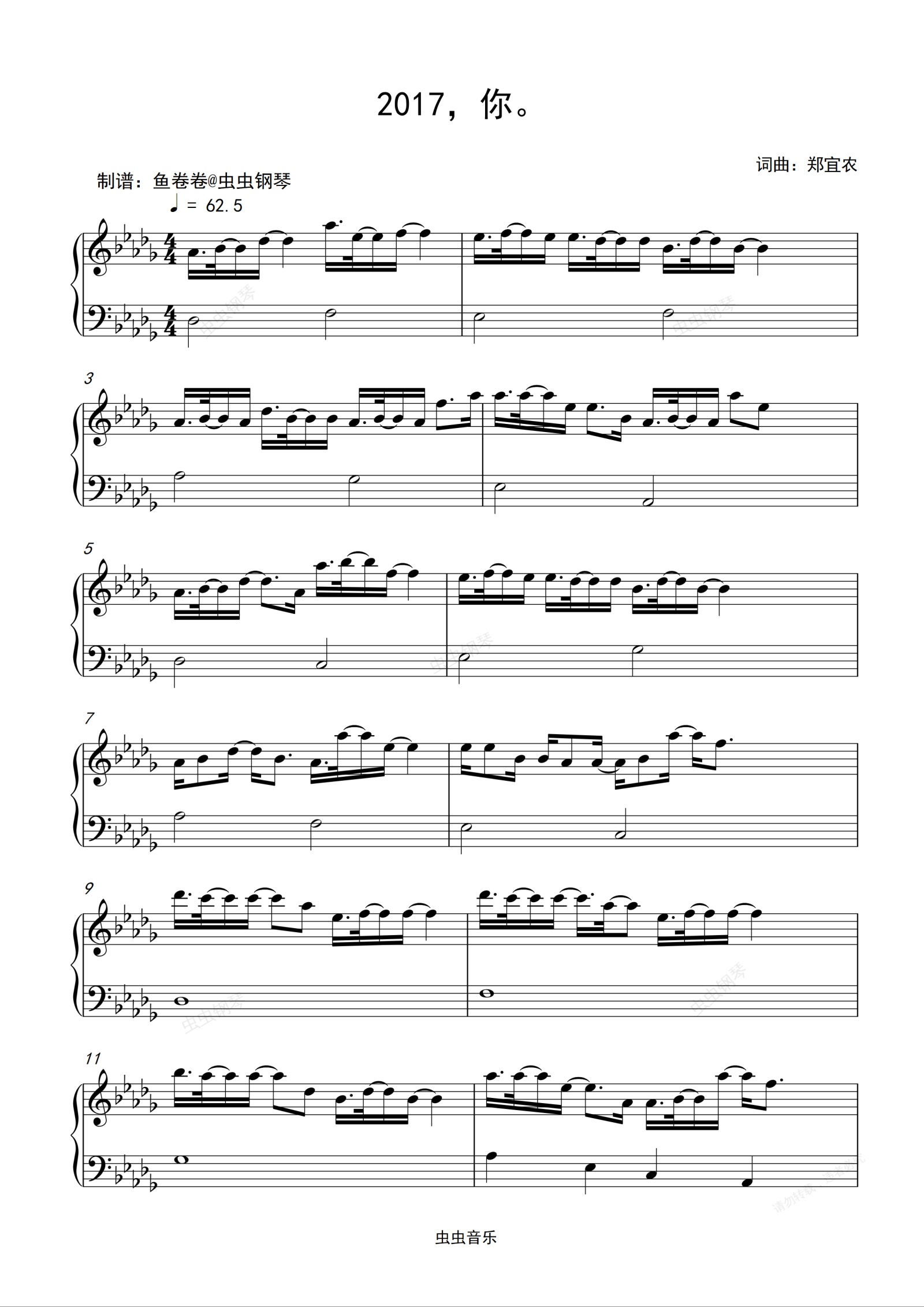 钢琴谱:2017,你。 - 郑宜农 钢琴谱