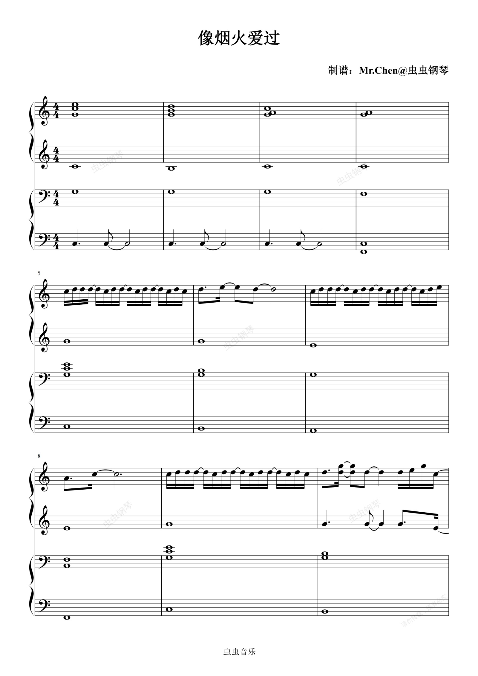 钢琴谱:像烟火爱过 (四手联弹)C调 - 影视剧《许我耀眼》主题曲 单依纯