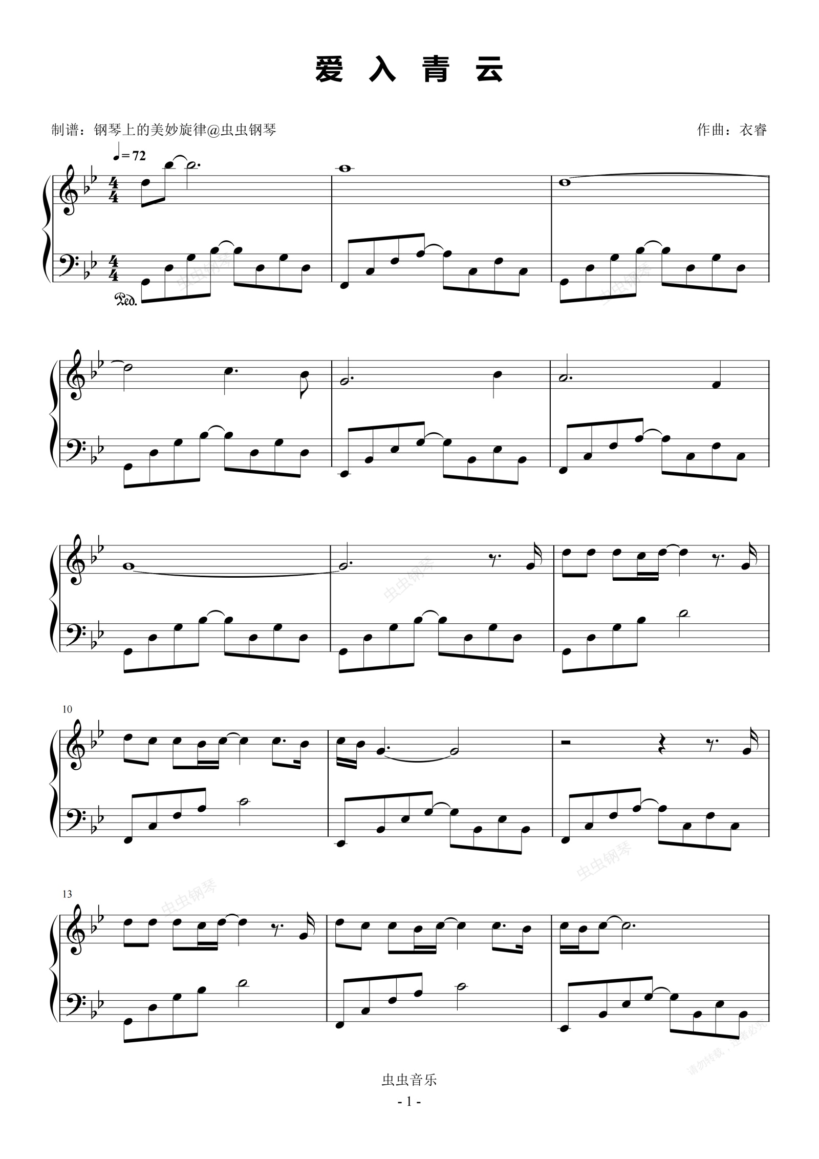 钢琴谱:爱入青云 简易版本 黄霄云 入青云