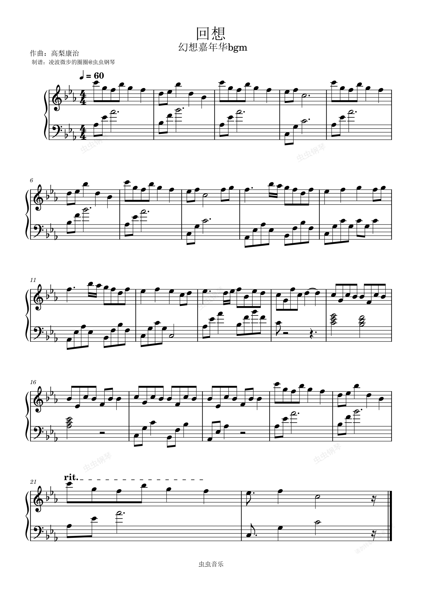 钢琴谱:回想(简单入门款/幻想嘉年华OST)