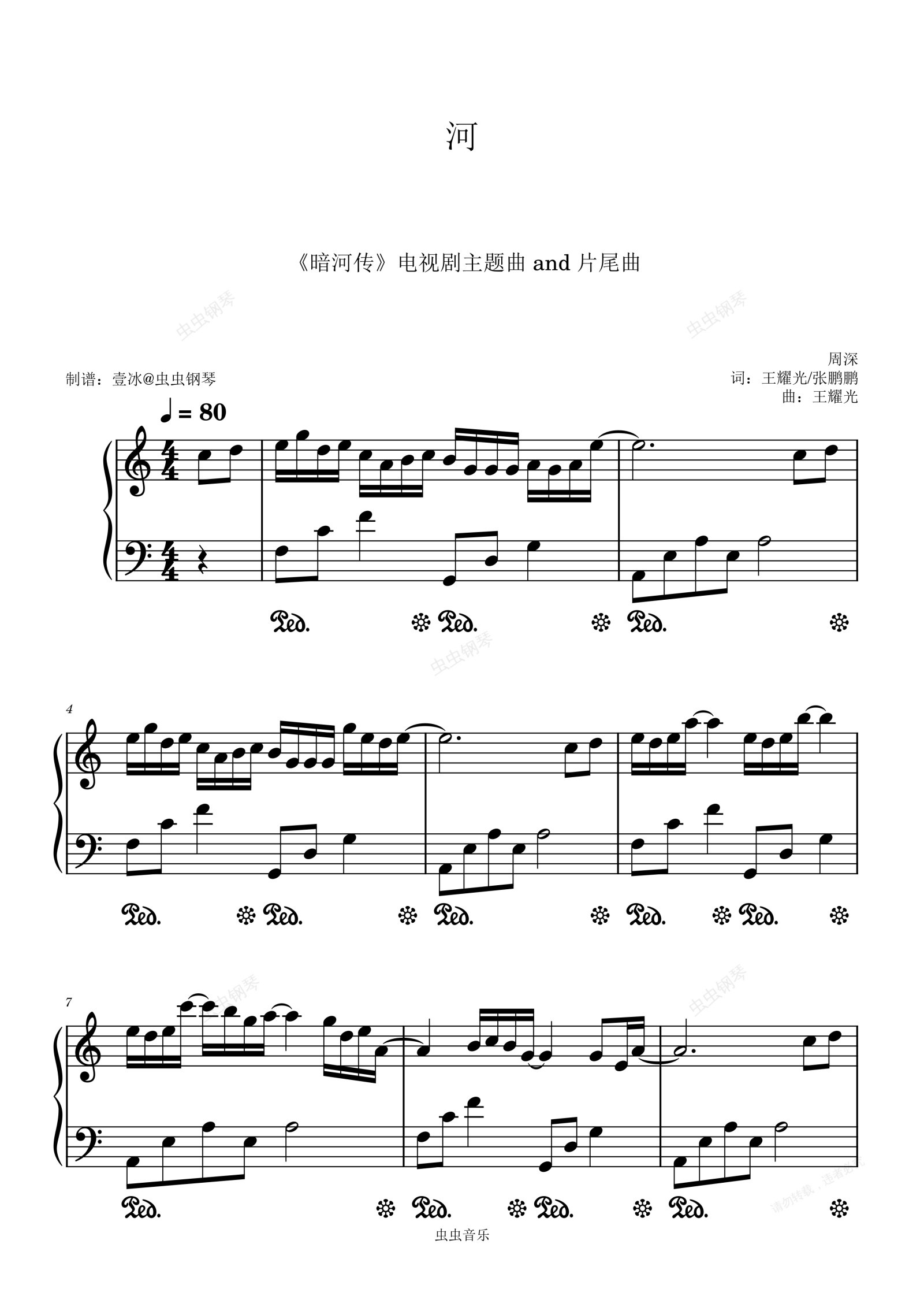 钢琴谱:河 (《暗河传》电视剧主题曲 and 片尾曲) - C调