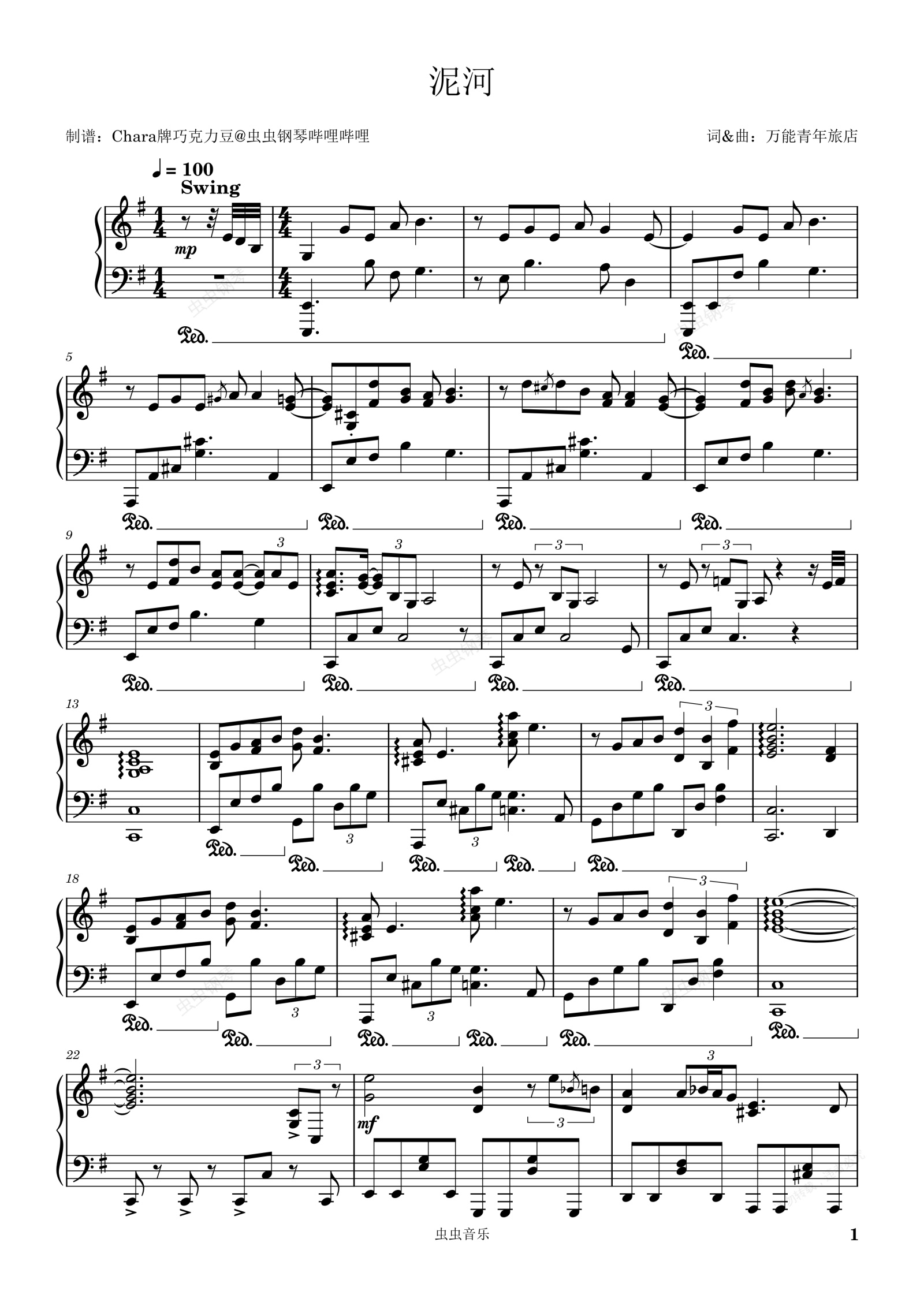 钢琴谱:泥河-万能青年旅店 完整原调钢琴谱
