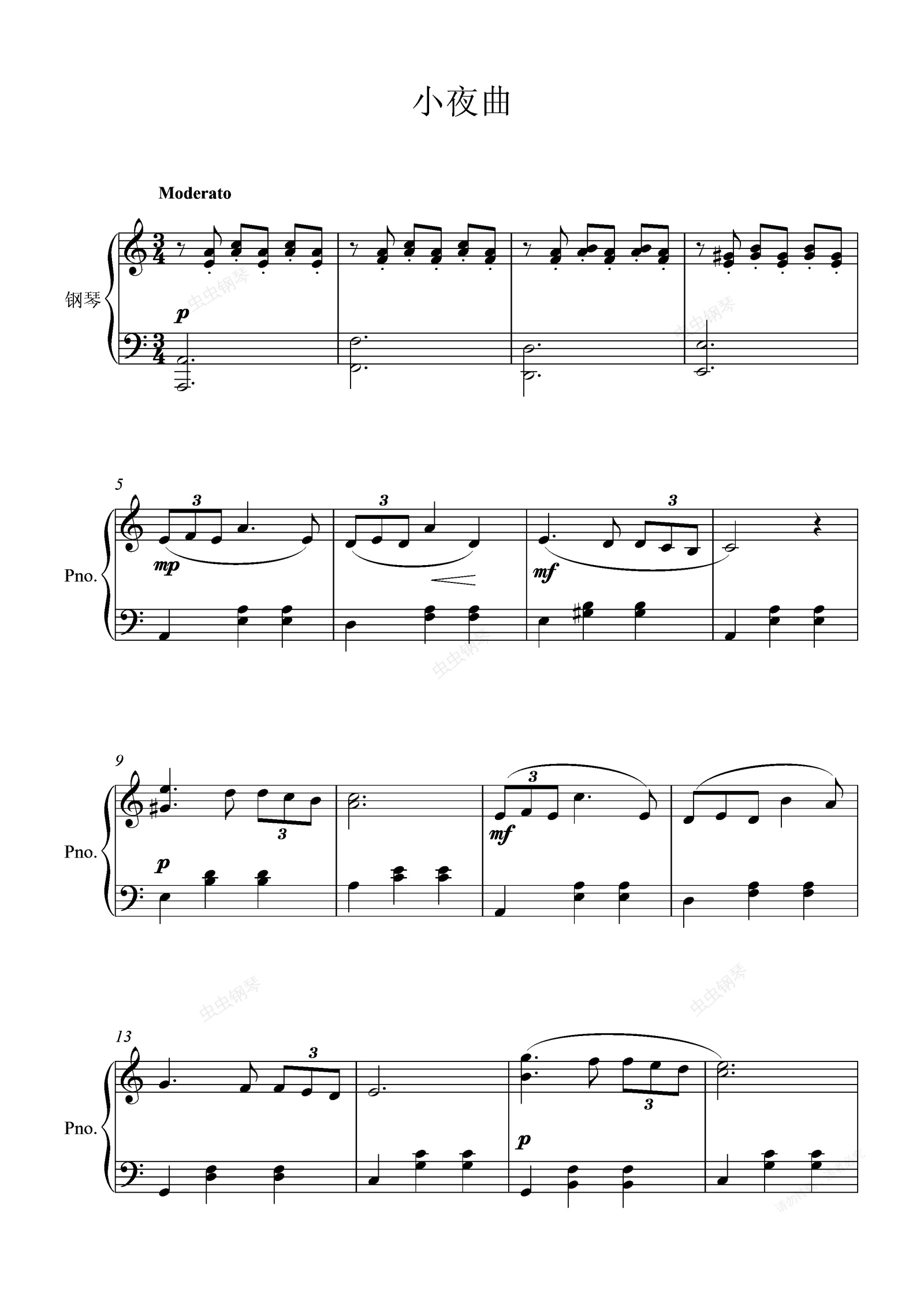 您的位置: 首页 > 钢琴谱库 > 小夜曲钢琴谱-佚名-中外古典练习曲合集