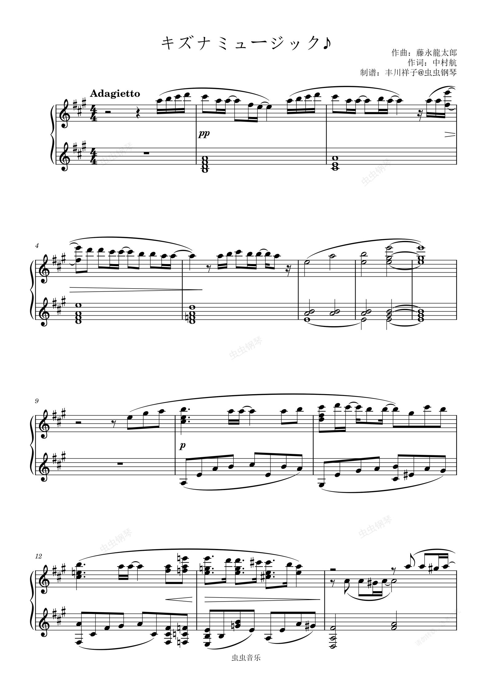 钢琴谱:キズナミュージック♪(友谊的华丽乐章【诗心_Gensopian改编版】)