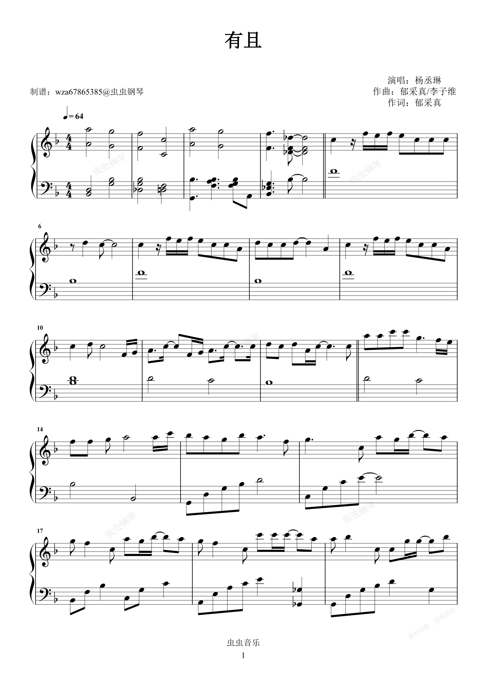 您的位置: 首页 > 钢琴谱库 > 有且钢琴谱-杨丞琳
