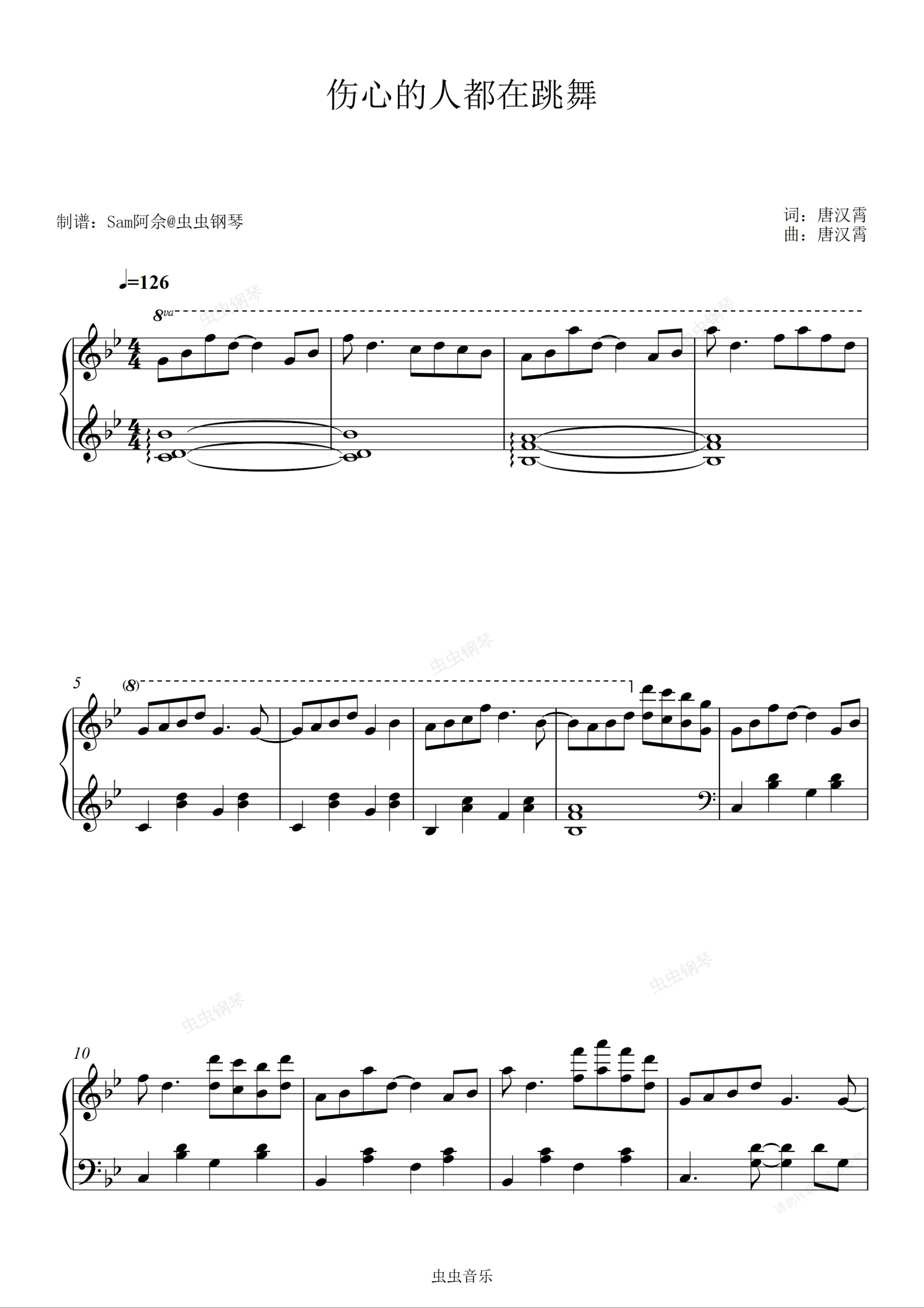 钢琴谱:原调《伤心的人都在跳舞》刘宇宁
