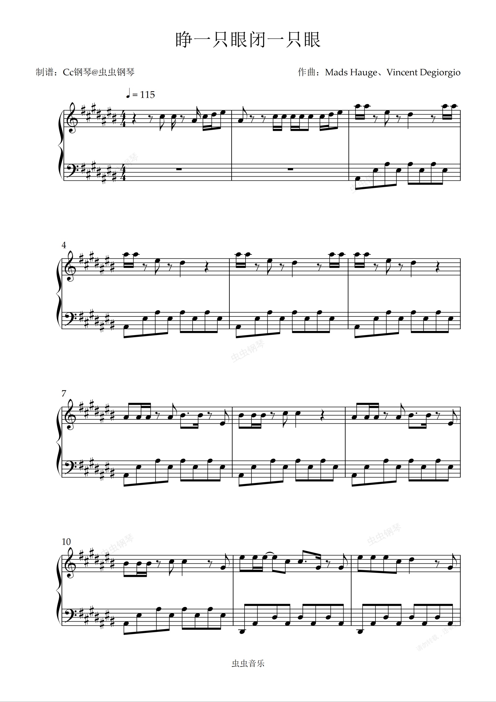 钢琴谱:睁一只眼闭一只眼 原调 好听易上手