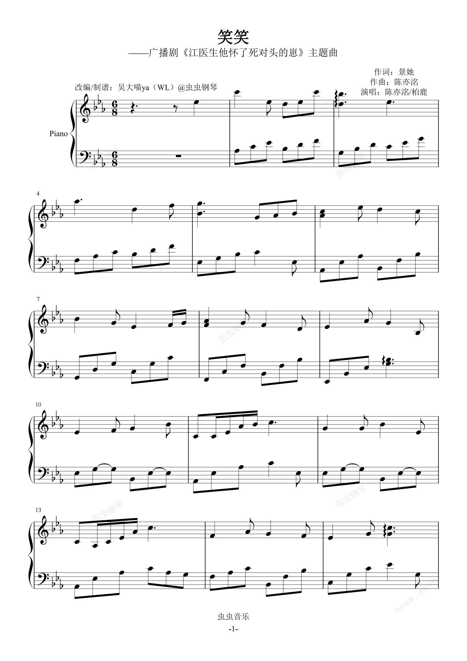 钢琴谱:笑笑-广播剧《江医生他怀了死对头的崽》主题曲 原调