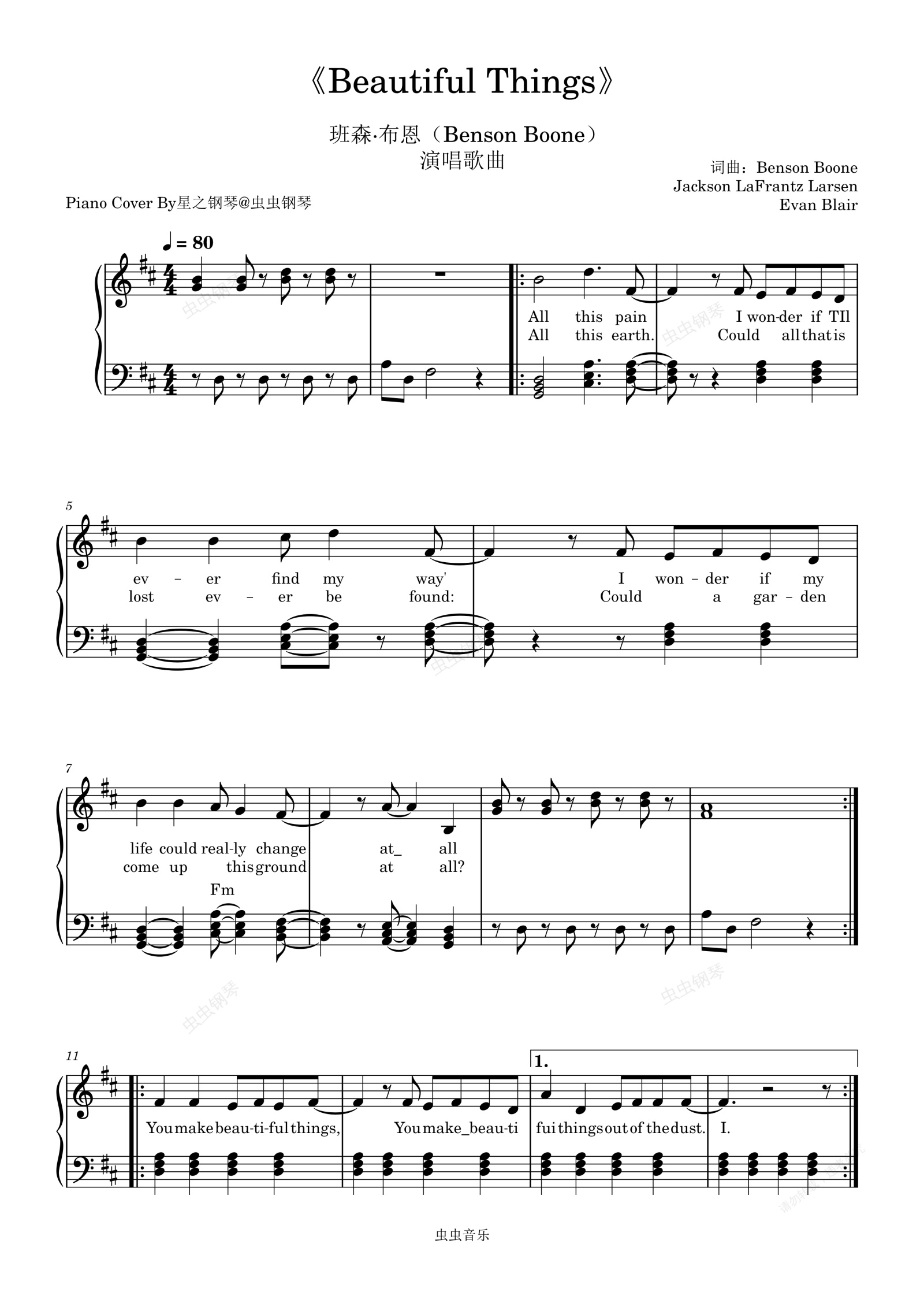 钢琴谱:【班森·布恩】带歌词《Beautiful Things》钢琴独奏版~星之钢琴~