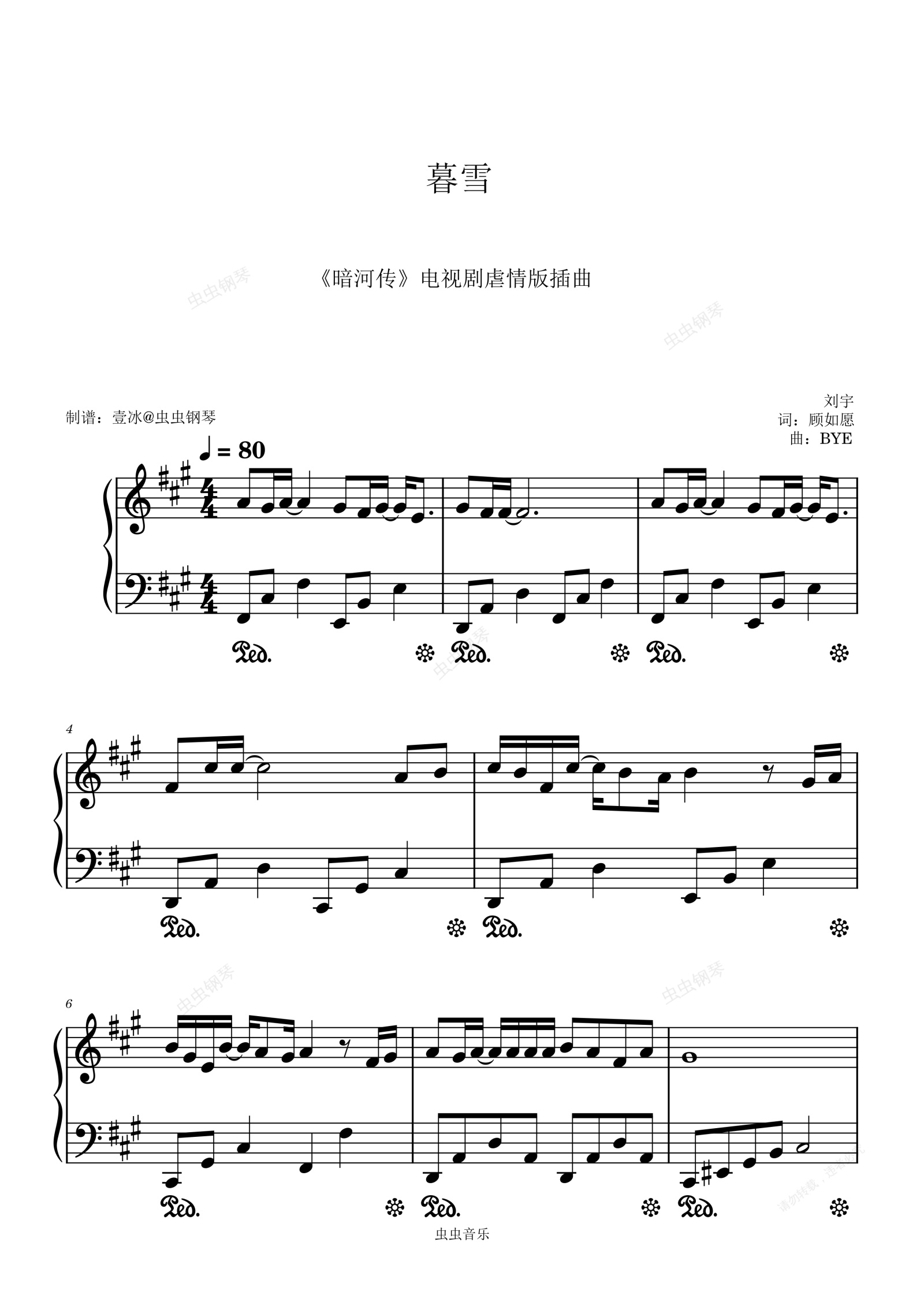 钢琴谱:暮雪 (《暗河传》电视剧虐情版插曲) - 原调