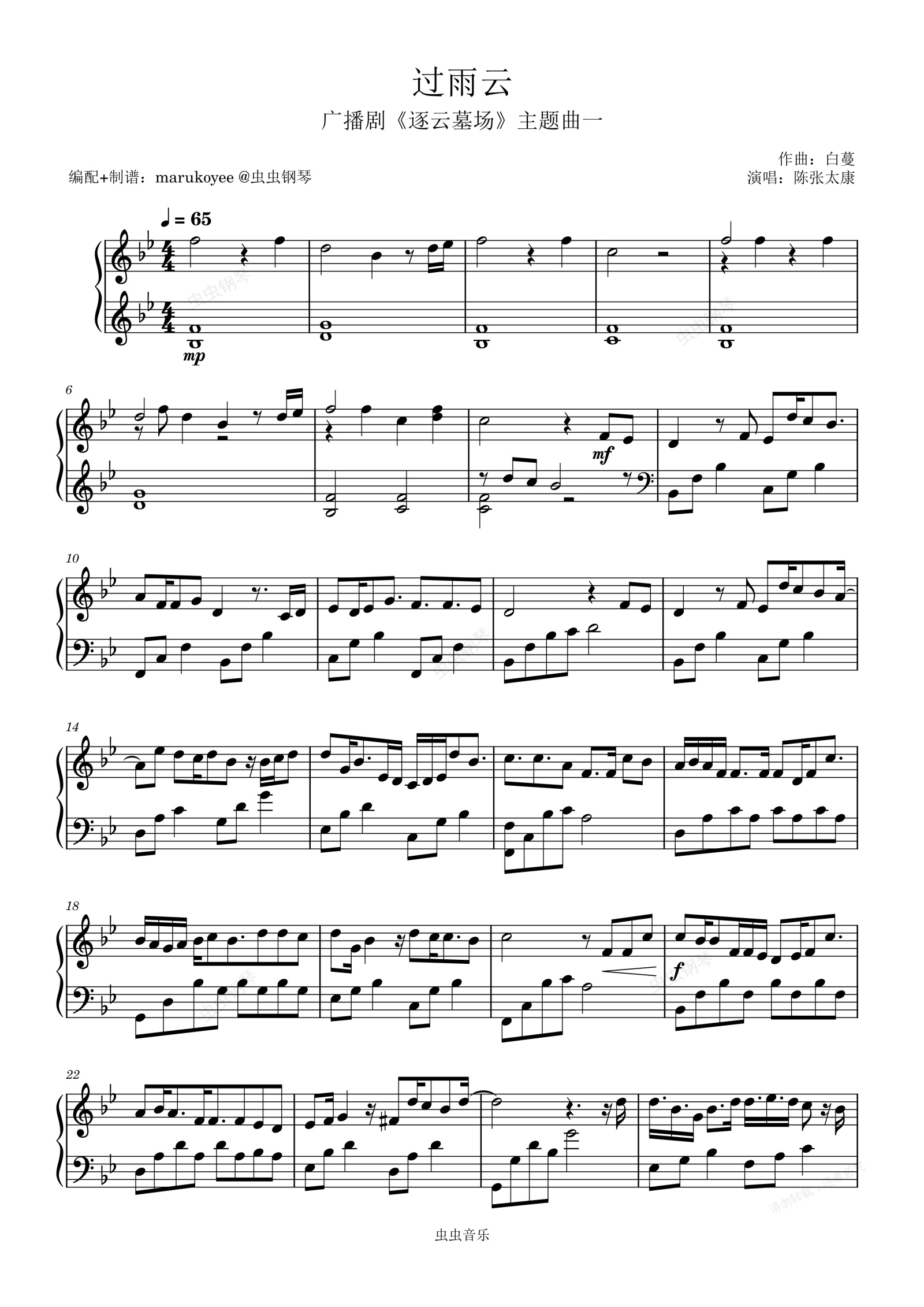 钢琴谱:【逐云墓场广播剧】主题曲一《过雨云》(原调Bb)