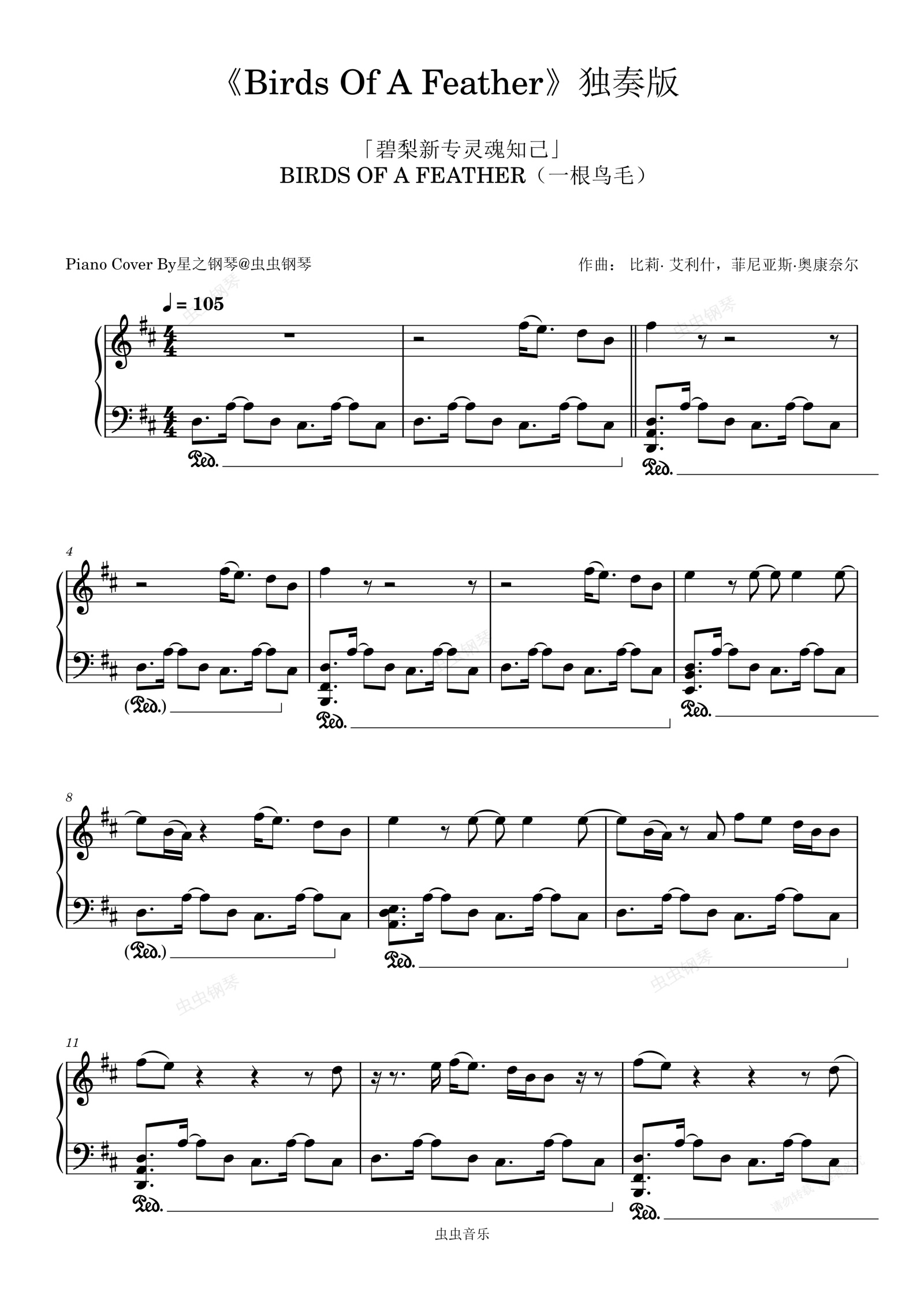 钢琴谱:【比莉·艾利什】《Birds of a Feather》钢琴还原版~星之钢琴~