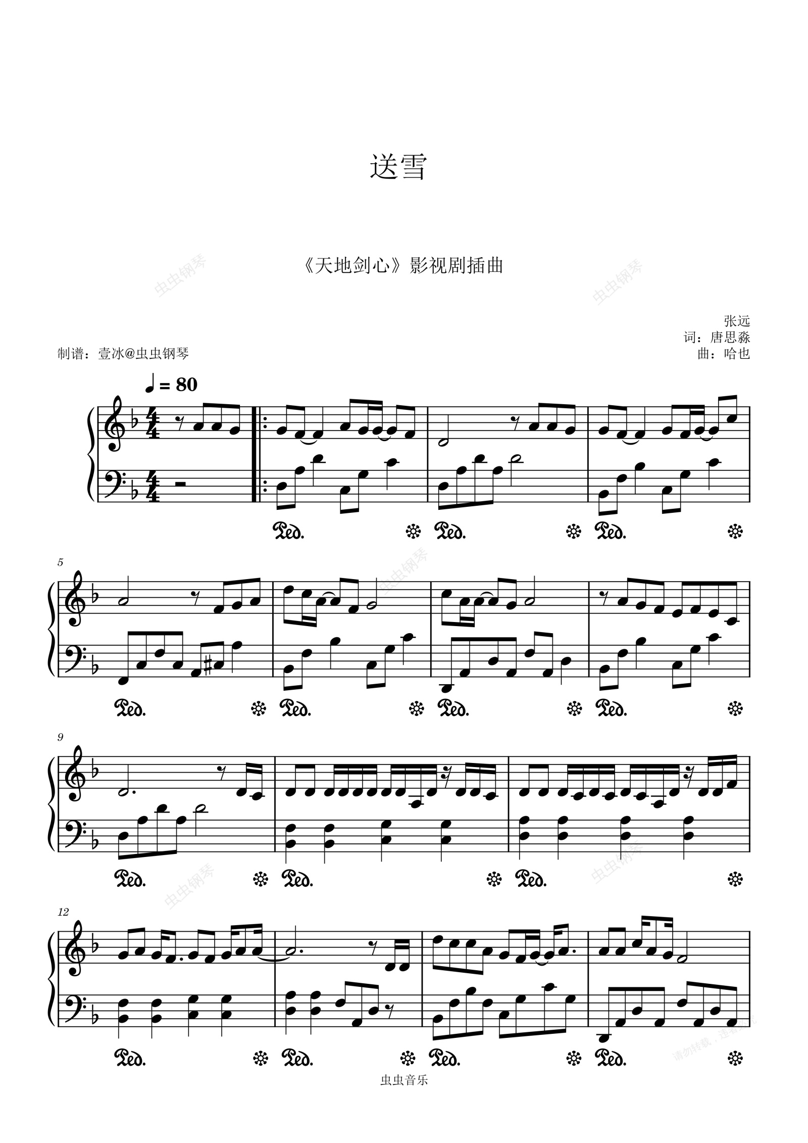 钢琴谱:送雪 (《天地剑心》影视剧插曲) - 原调