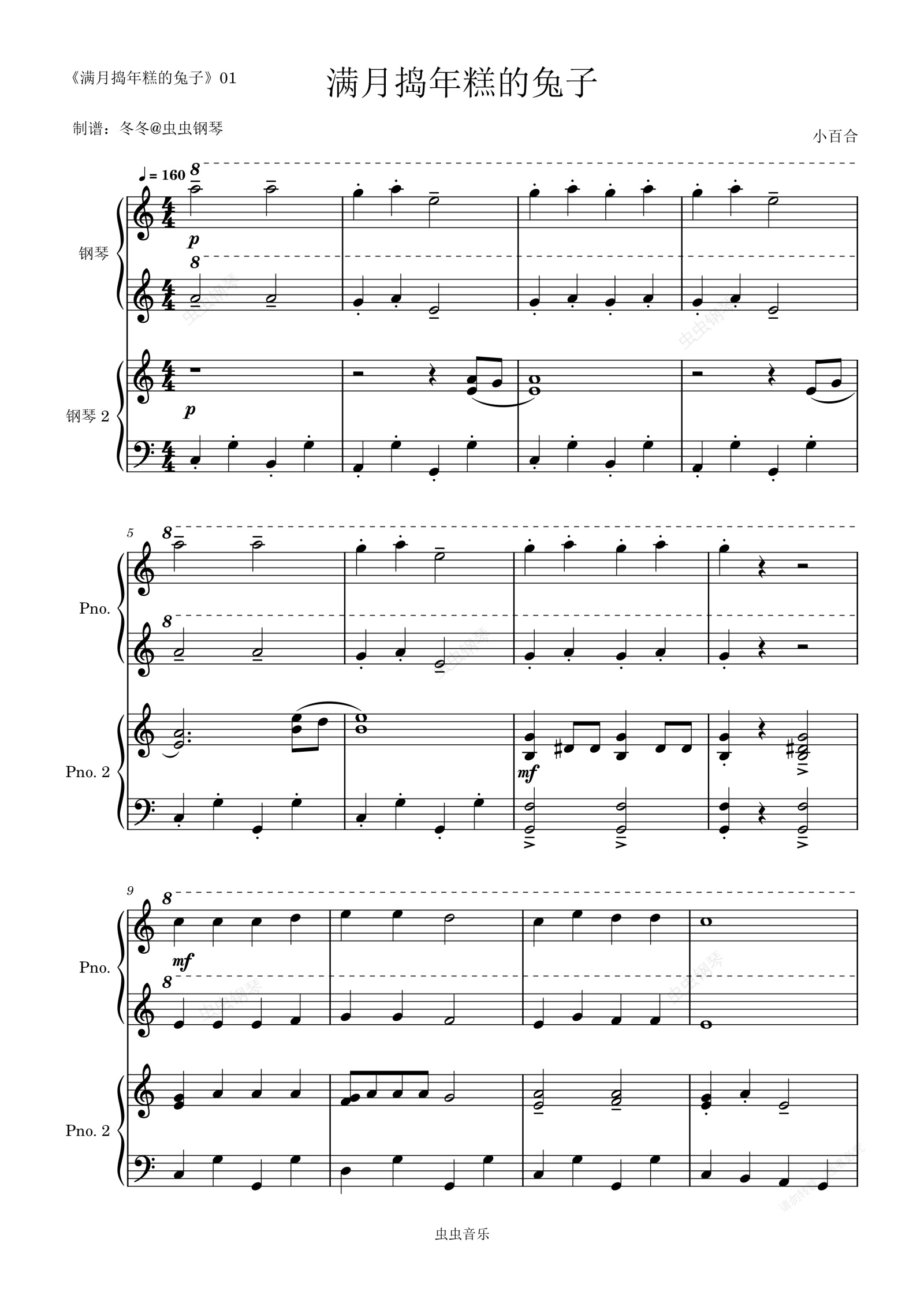 钢琴谱:满月捣年糕的兔子【四手联弹】