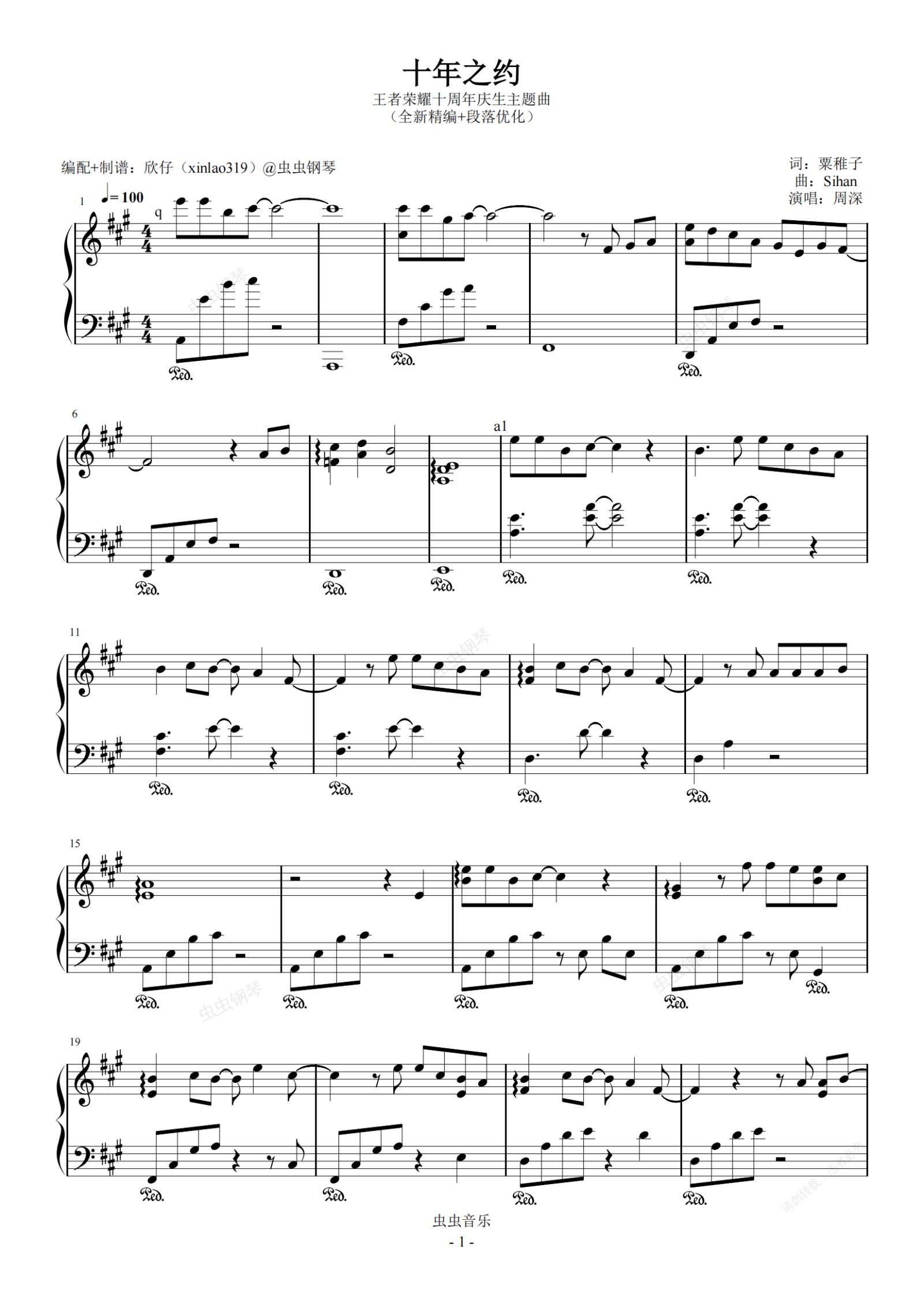 钢琴谱:十年之约(原调A、周深、王者荣耀十周年庆生主题曲、段落优化)
