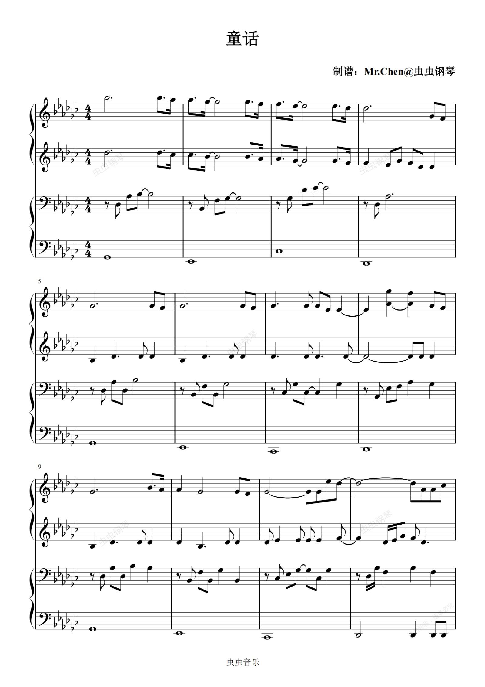 钢琴谱:童话 (四手联弹)- 光良