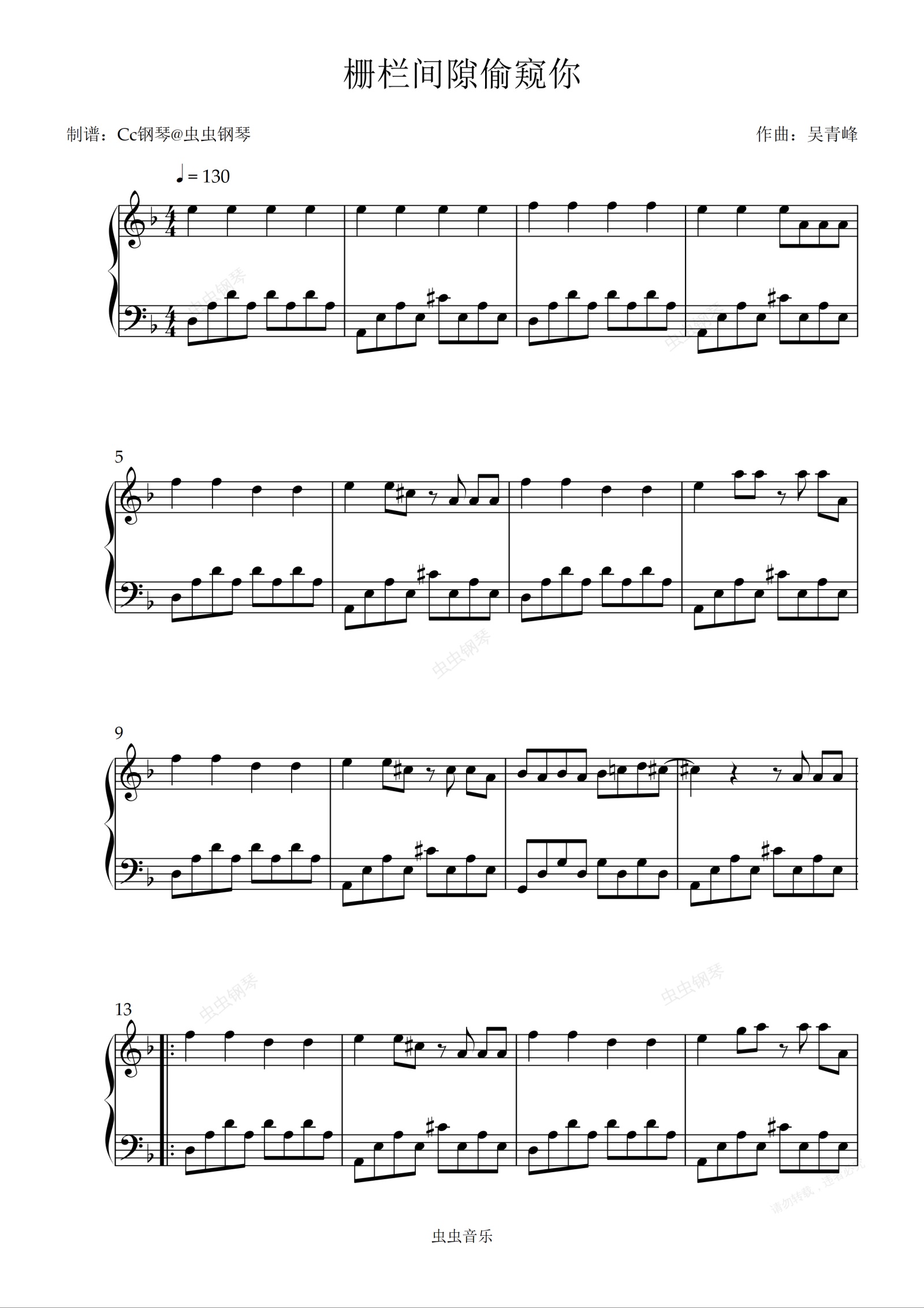 钢琴谱:栅栏间隙偷窥你 原调 好听易上手