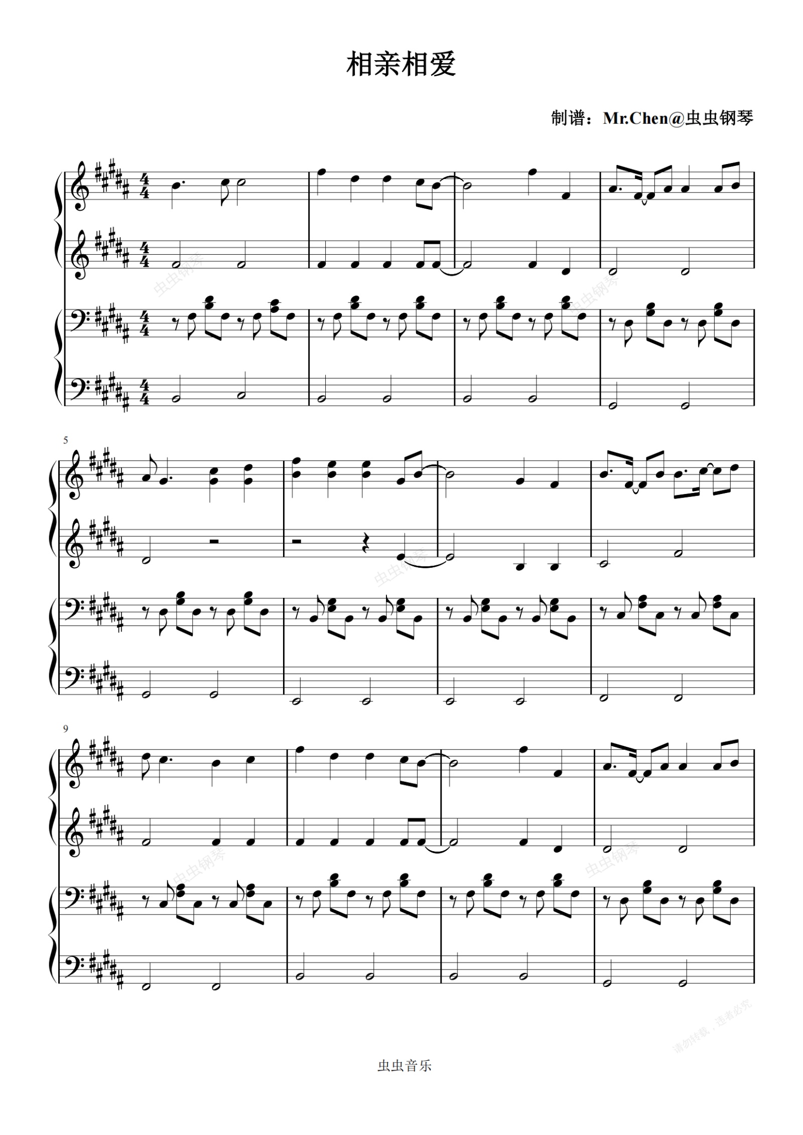 钢琴谱:相亲相爱 (四手联弹)原调 - 群星