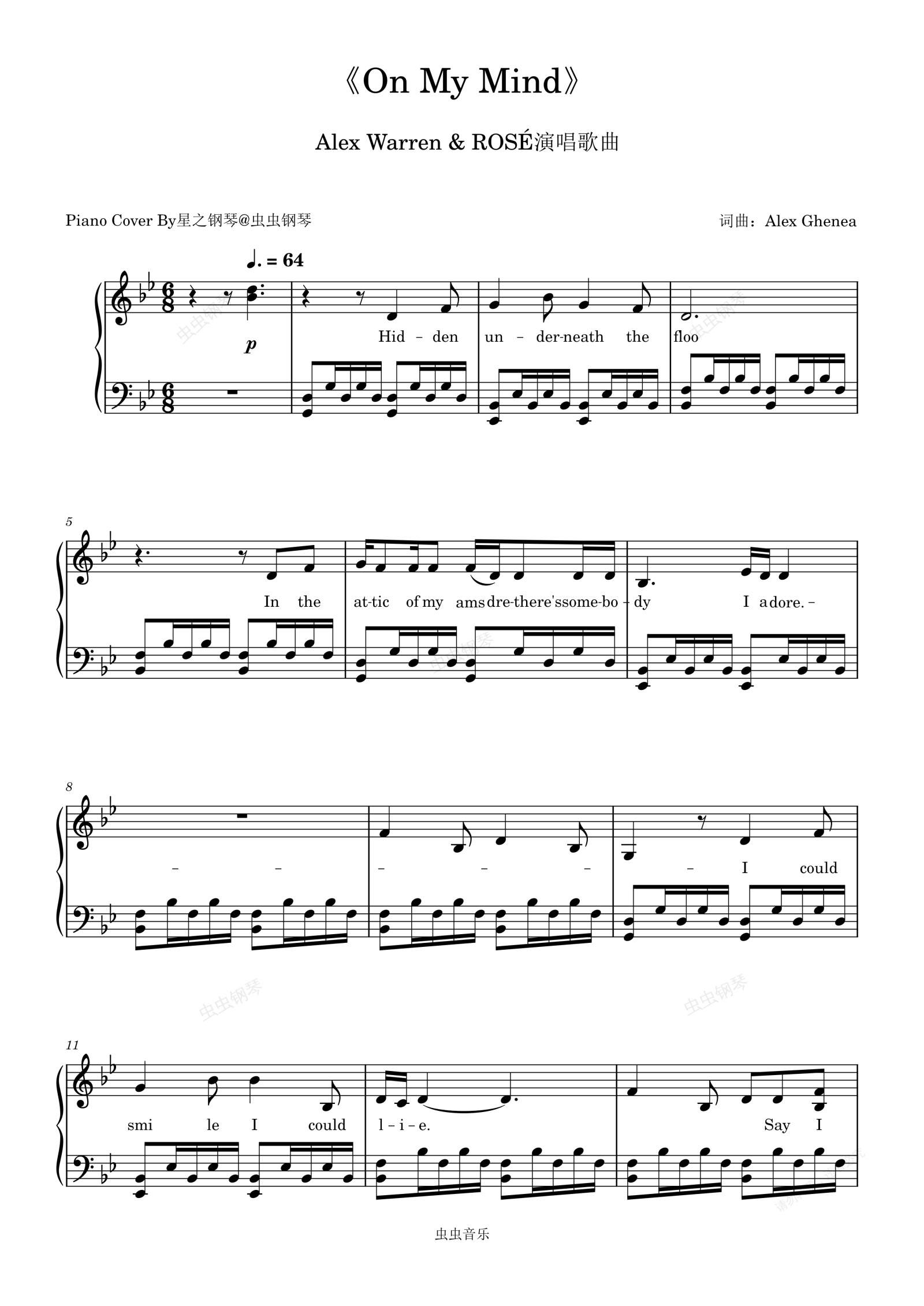 钢琴谱:【亚历克斯·沃伦&ROSÉ】带歌词《On My Mind》钢琴独奏版~星之钢琴~