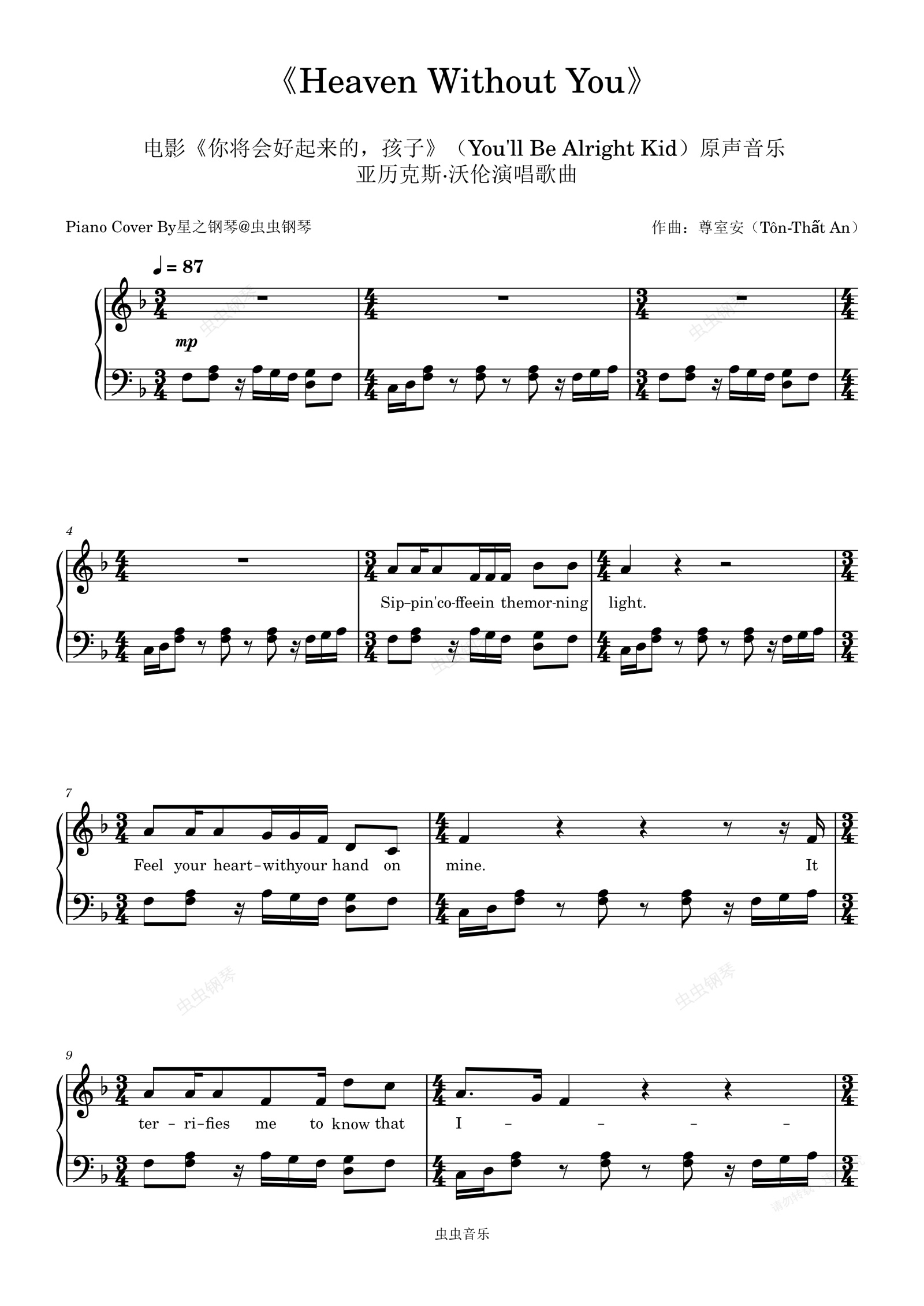 钢琴谱:【亚历克斯·沃伦】《Heaven Without 》钢琴独奏版~星之钢琴~