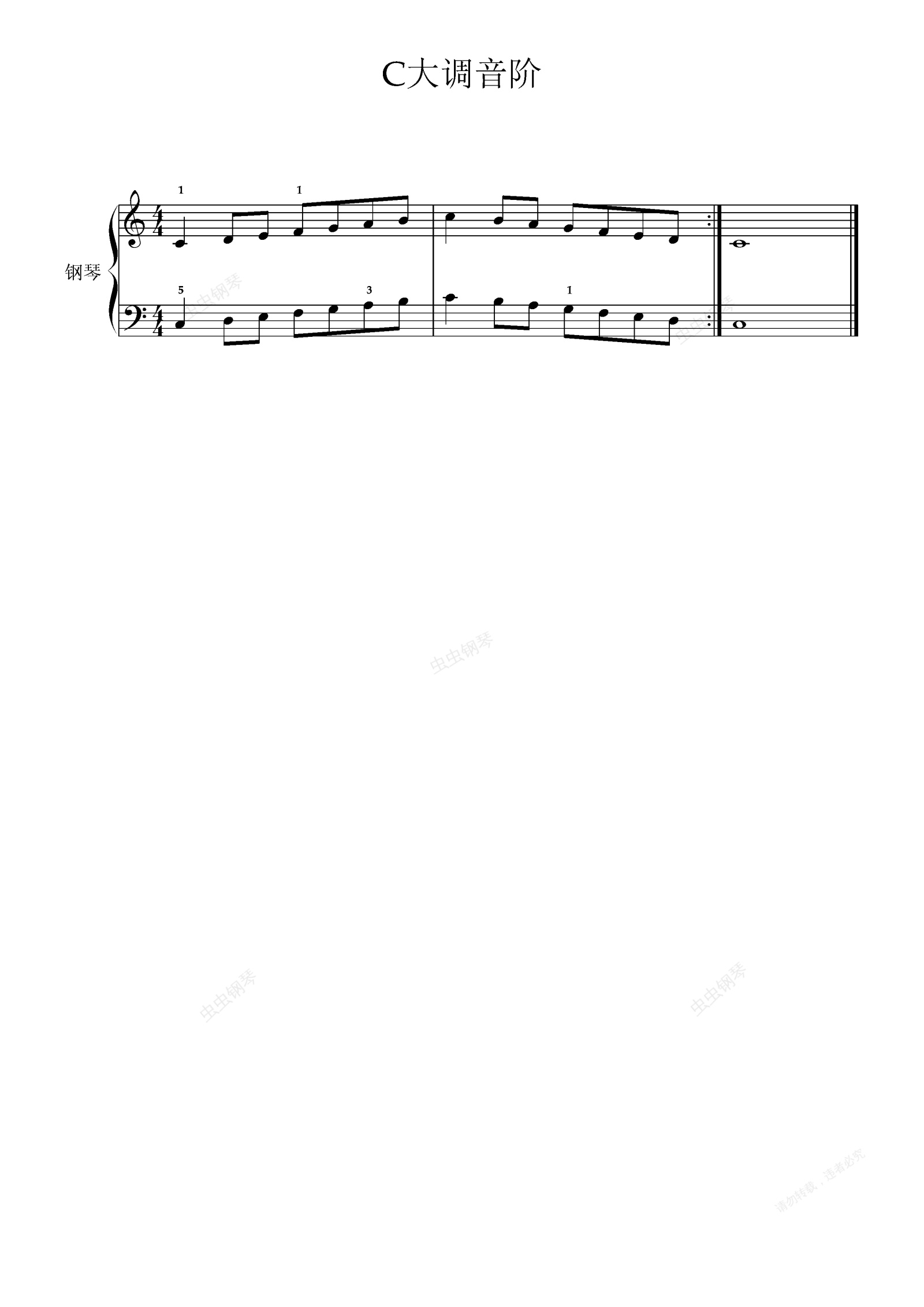 钢琴谱:大调和小调音阶-1.C大调音阶
