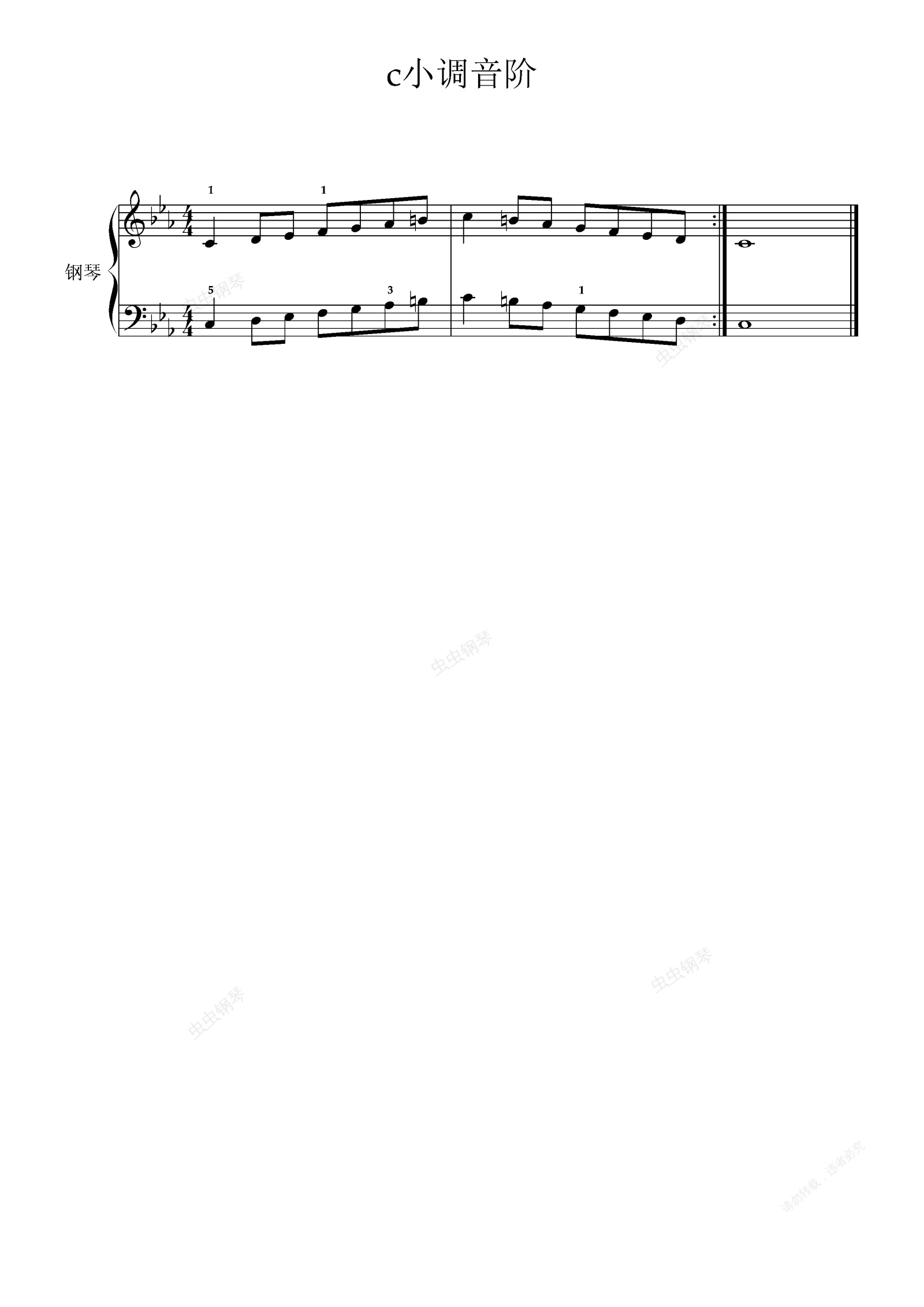钢琴谱:大调和小调音阶-2.c小调音阶
