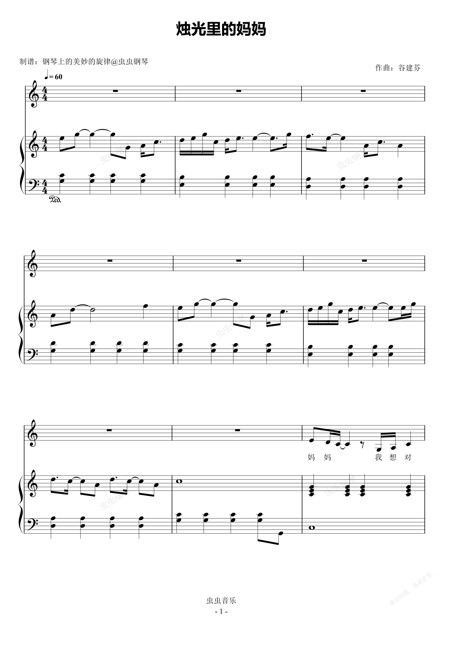 钢琴谱:烛光里的妈妈 C调简易钢琴弹唱伴奏 带歌词 毛阿敏