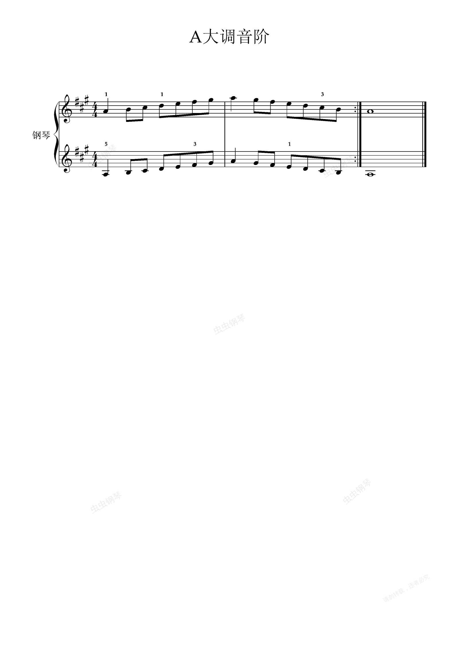 钢琴谱:大调和小调音阶-7.A大调音阶