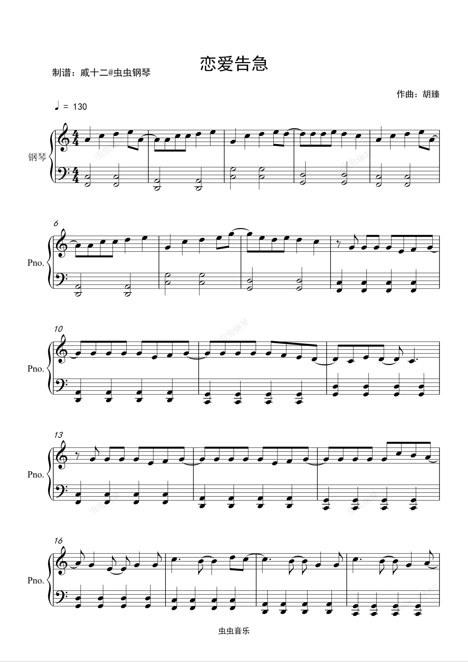 钢琴谱:恋爱告急-C调简单版