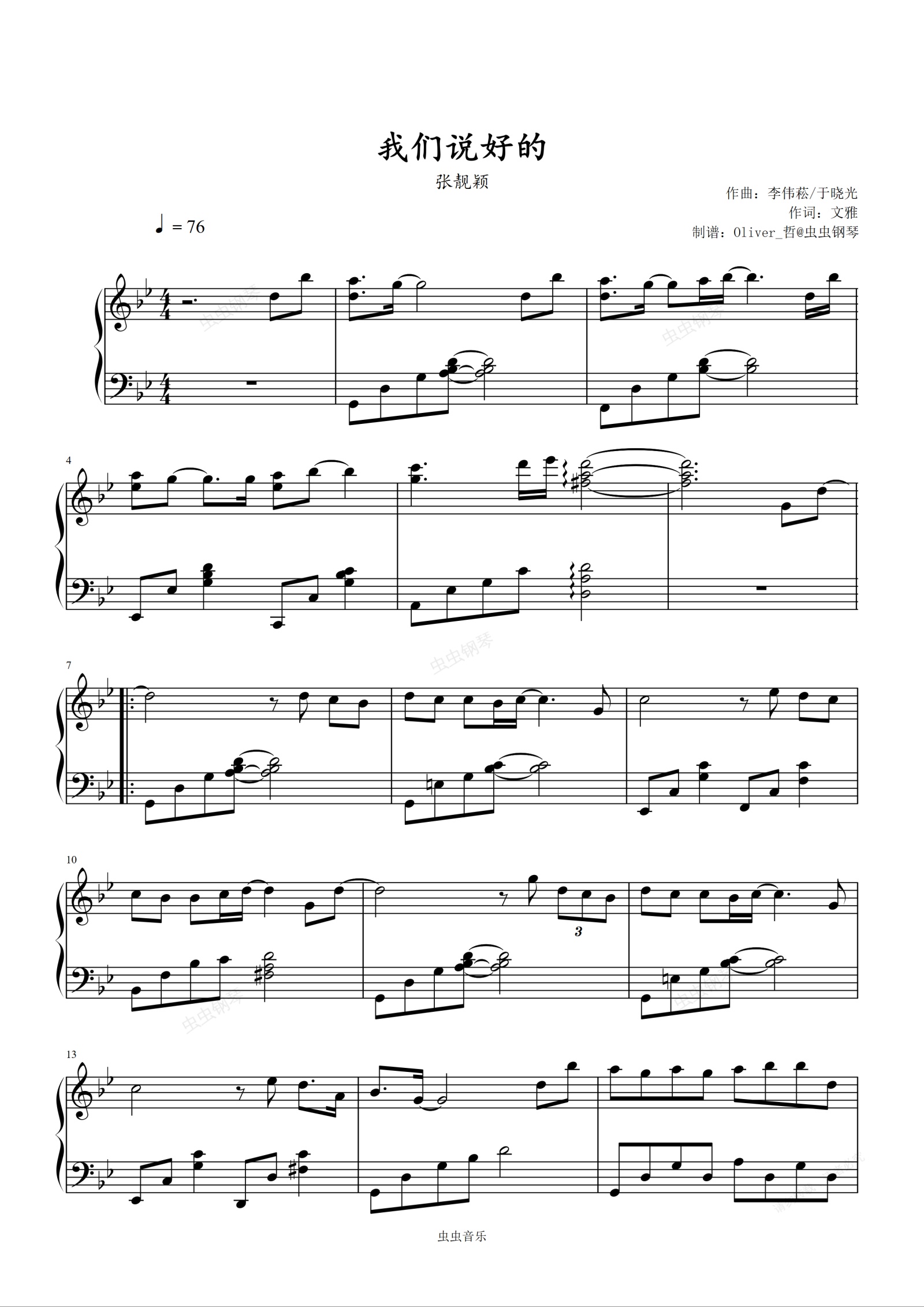 钢琴谱:我们说好的-张靓颖 原调精编简易版 经典怀旧 好听易弹