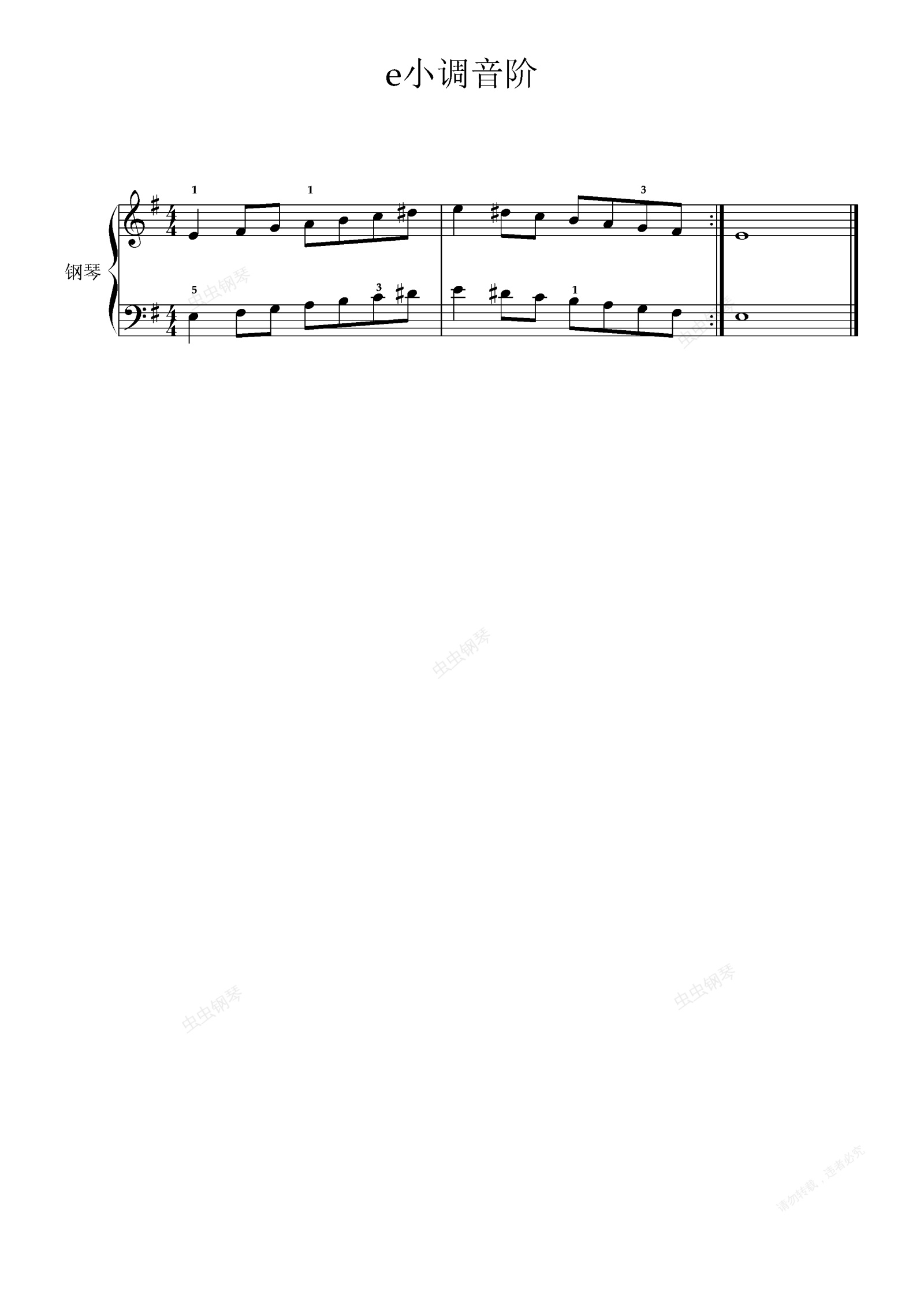 钢琴谱:大调和小调音阶-10.e小调音阶