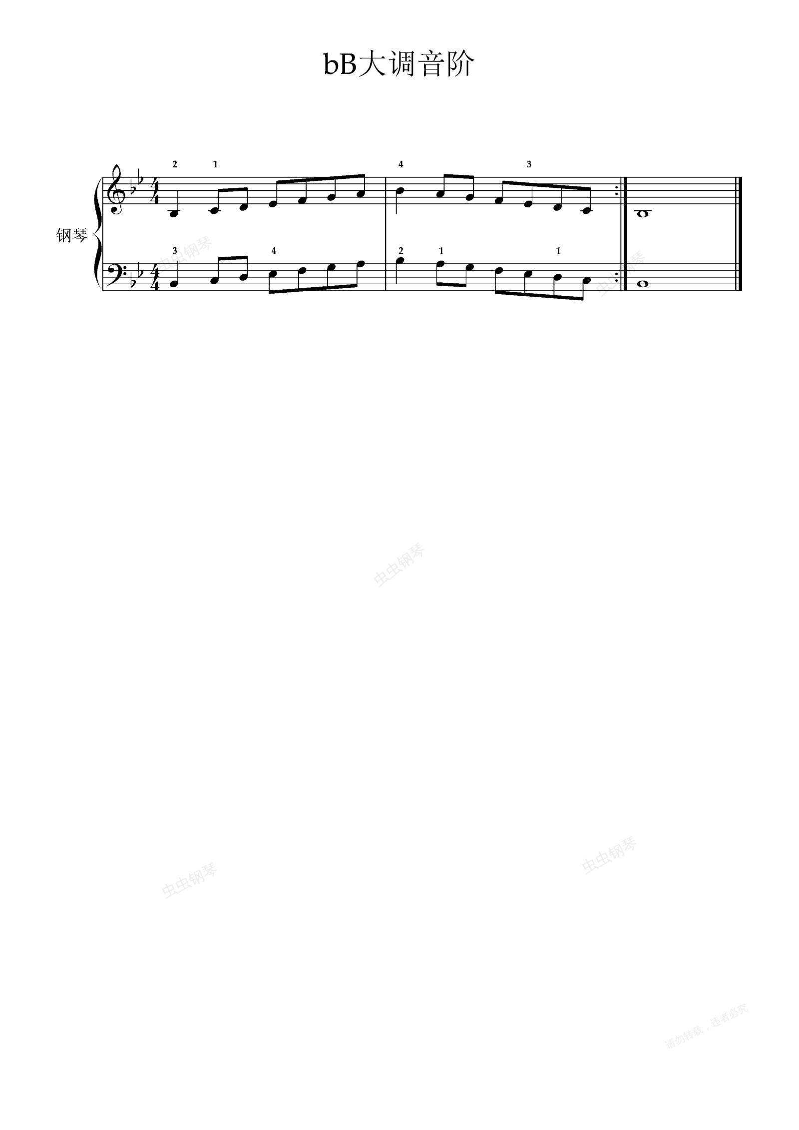 钢琴谱:大调和小调音阶-15.降B大调音阶