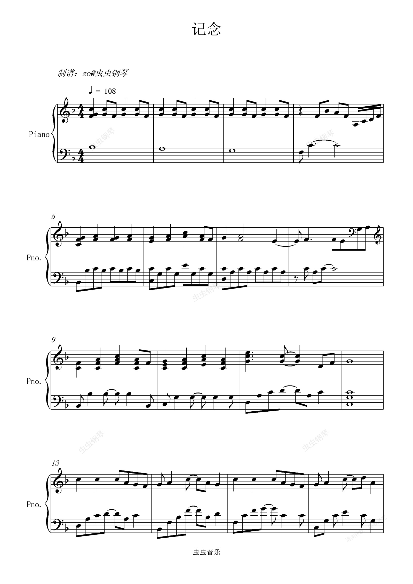 钢琴谱:记念 - RAiNBOW计划 /雷雨心
