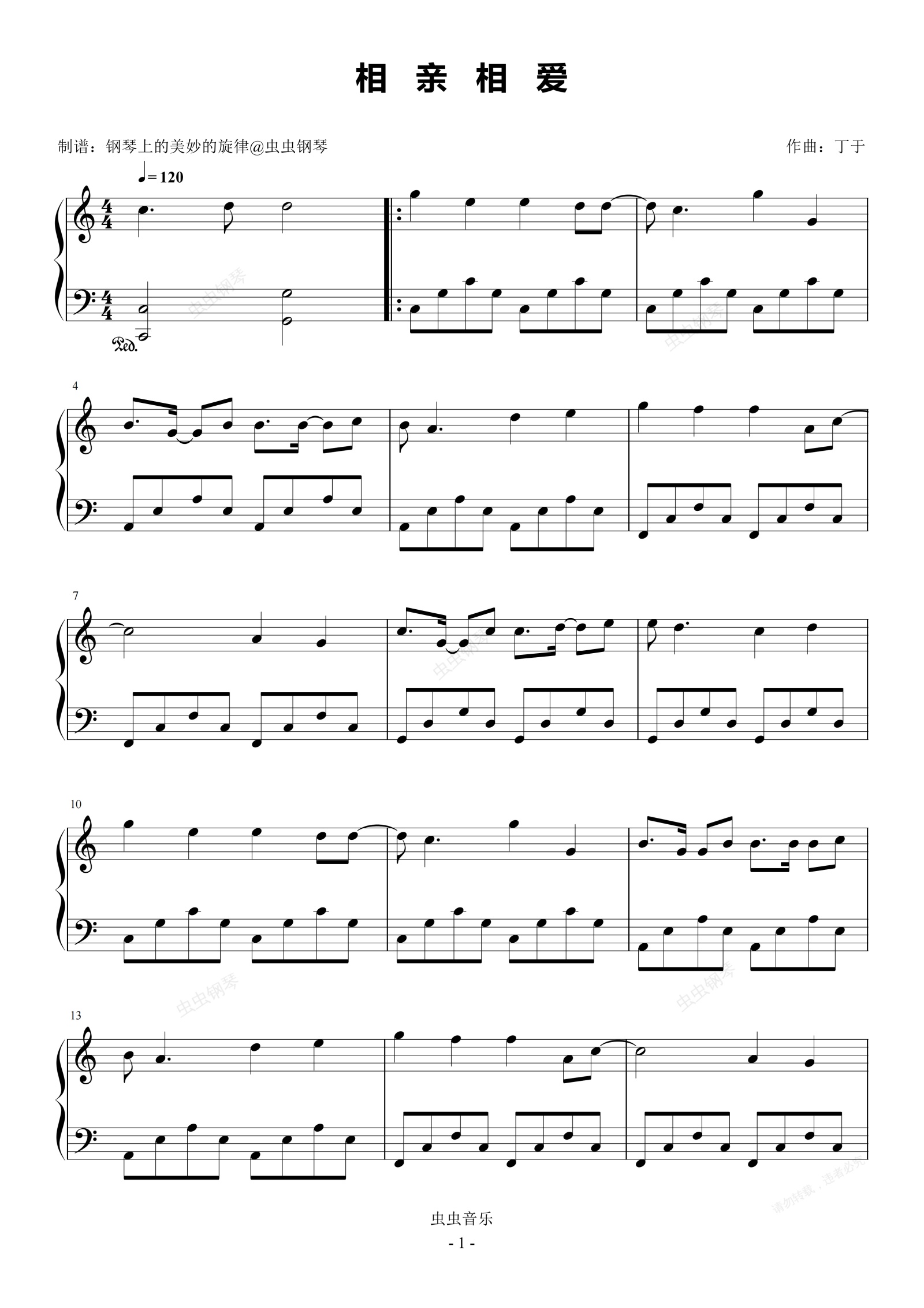 钢琴谱:相亲相爱 C调简易版 孙楠/陈慧琳