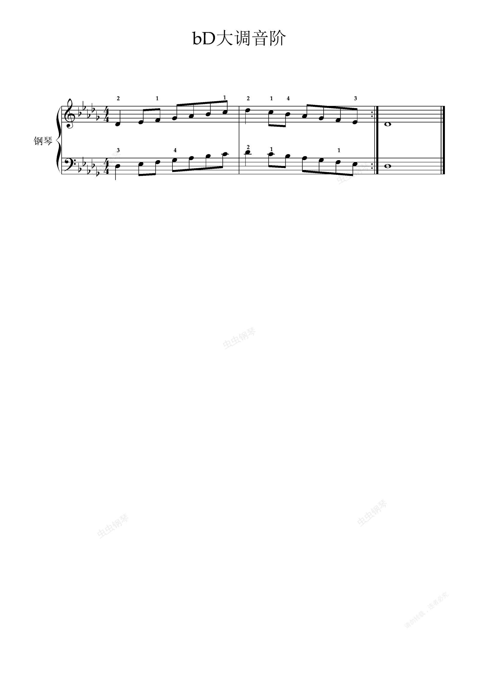 钢琴谱:大调和小调音阶-21.降D大调音阶