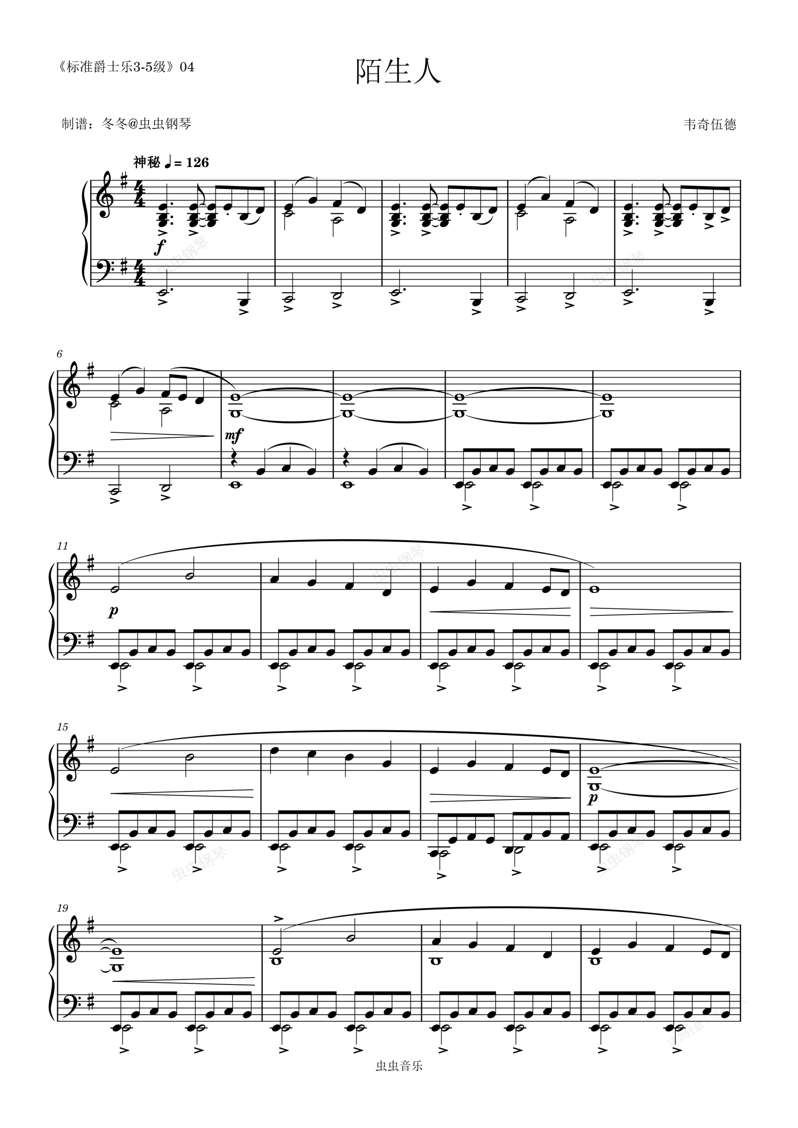钢琴谱:陌生人【爵士】
