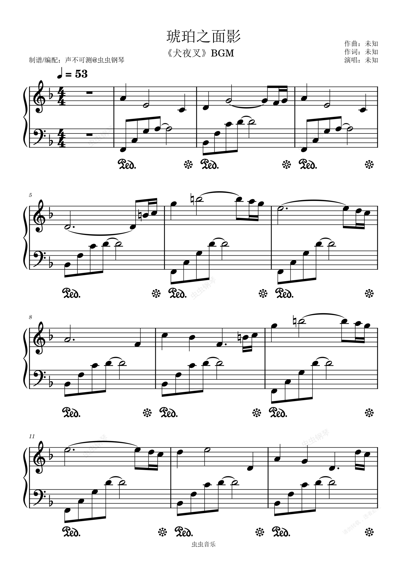 钢琴谱:琥珀之面影《犬夜叉》BGM - 声不可测