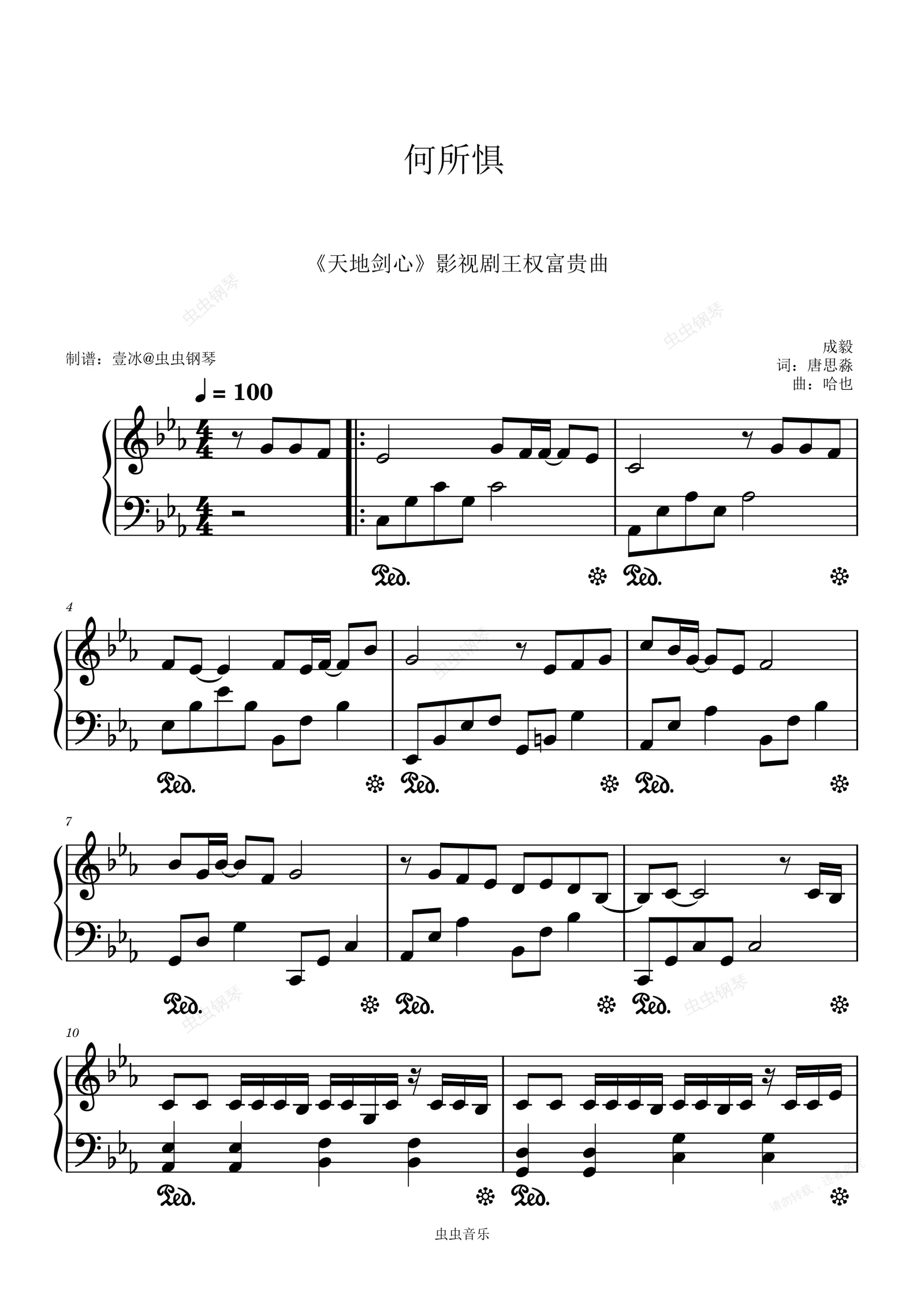 钢琴谱:何所惧 (《天地剑心》影视剧王权富贵曲) - 原调