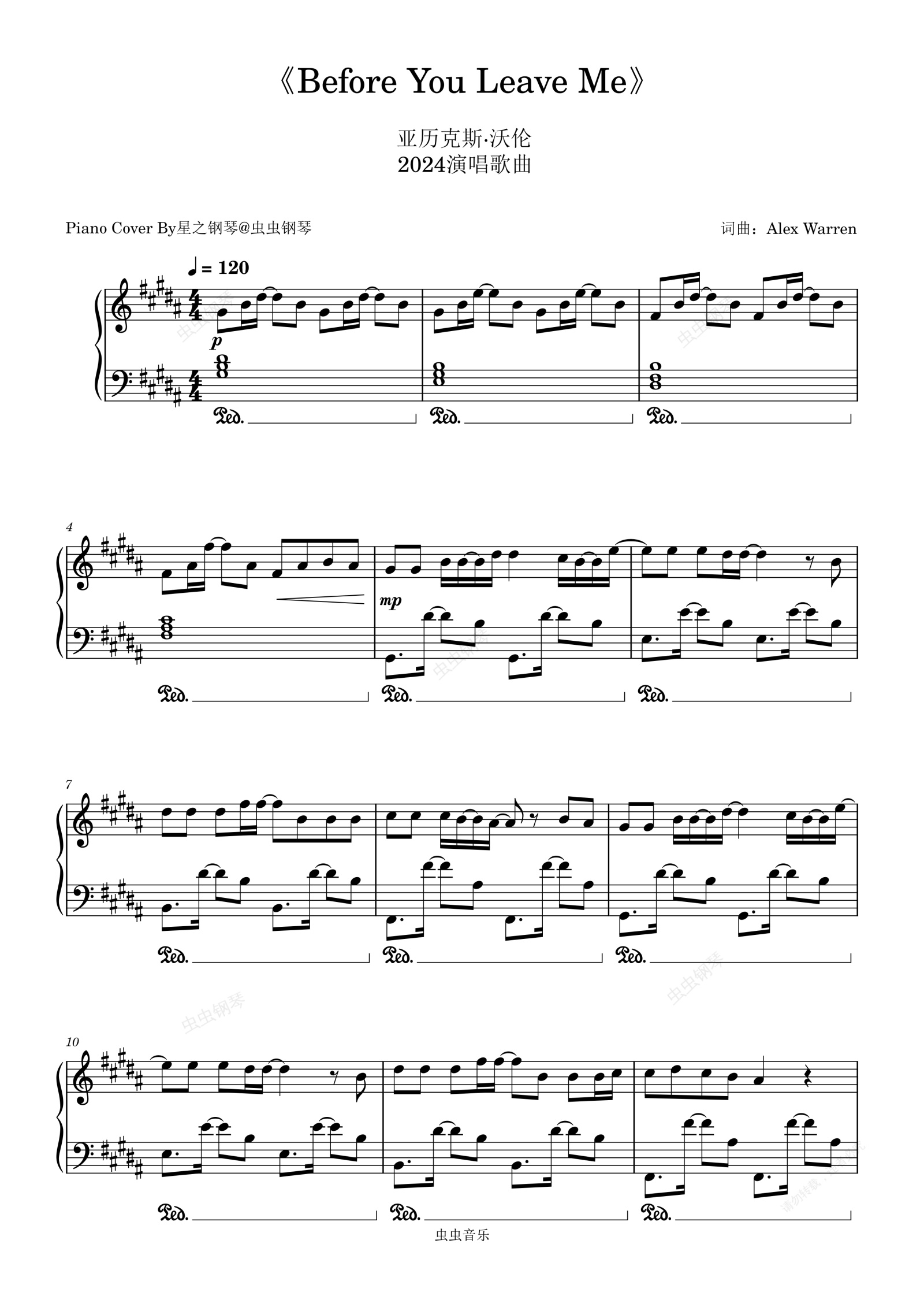 钢琴谱:【亚历克斯·沃伦】《Before You Leave Me》钢琴还原独奏版~星之钢琴~