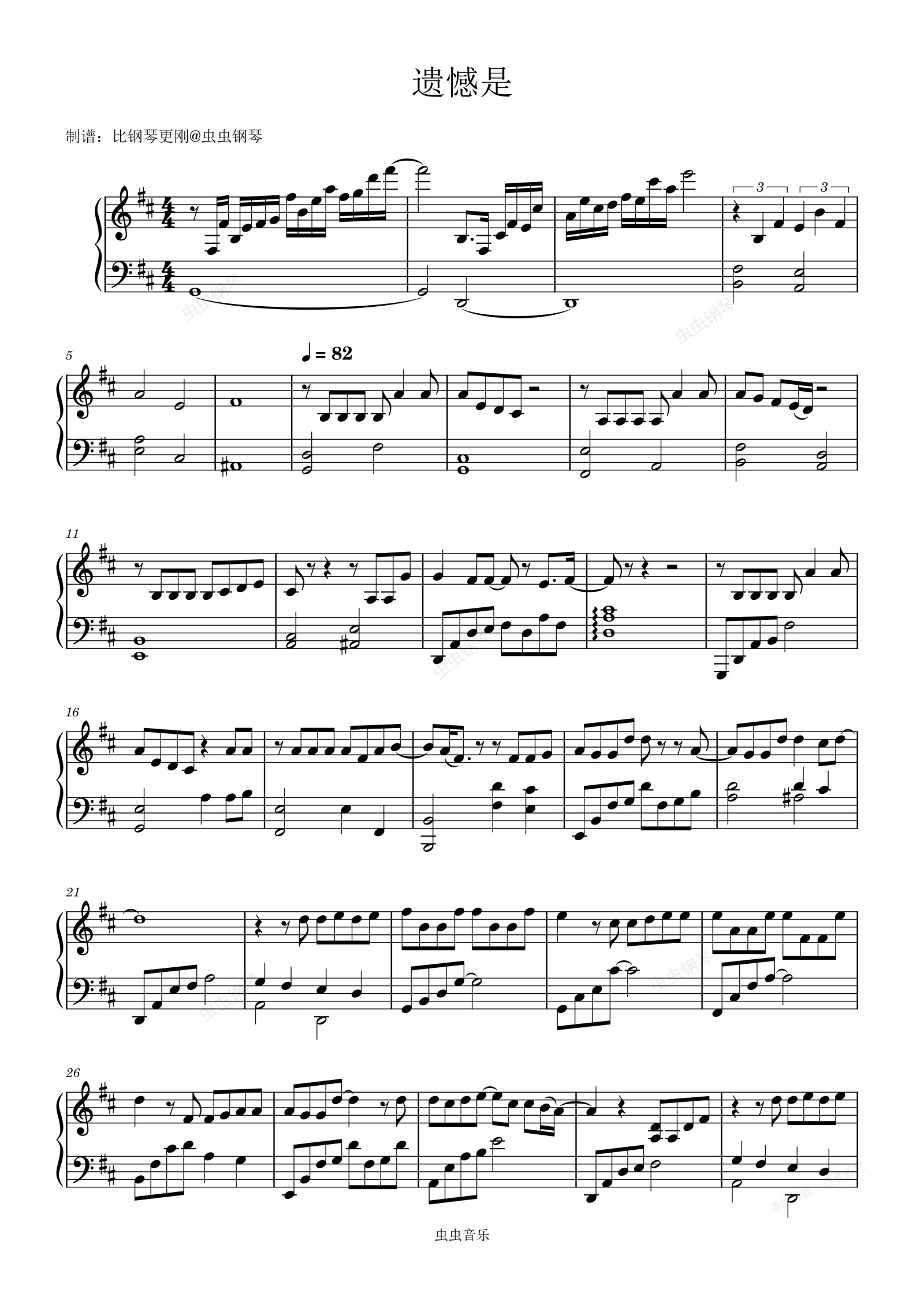 钢琴谱:遗憾是(《音乐缘计划》黄子弘凡版)