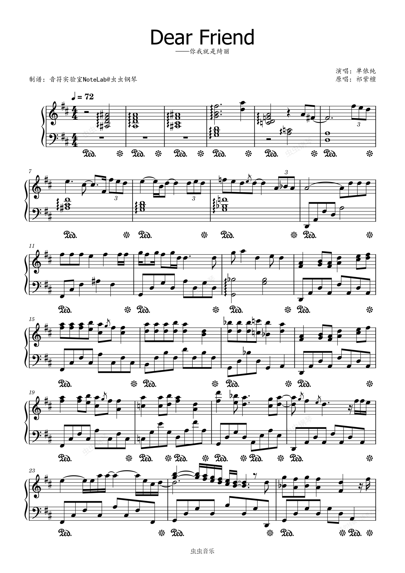 钢琴谱:Dear Friend-单依纯【歌手2025 LIVE】(原唱:祁紫檀)
