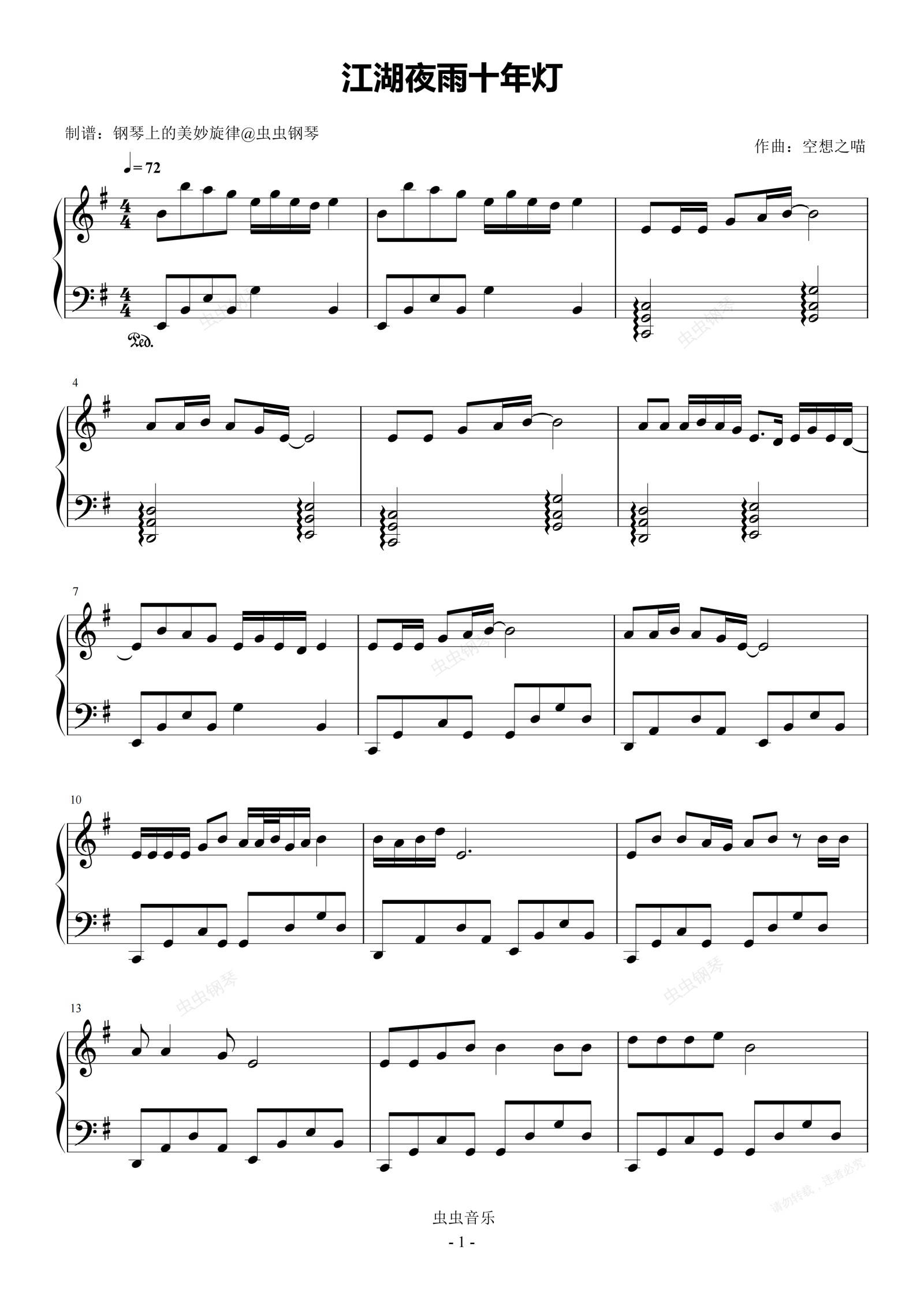 钢琴谱:江湖夜雨十年灯 原调简易版