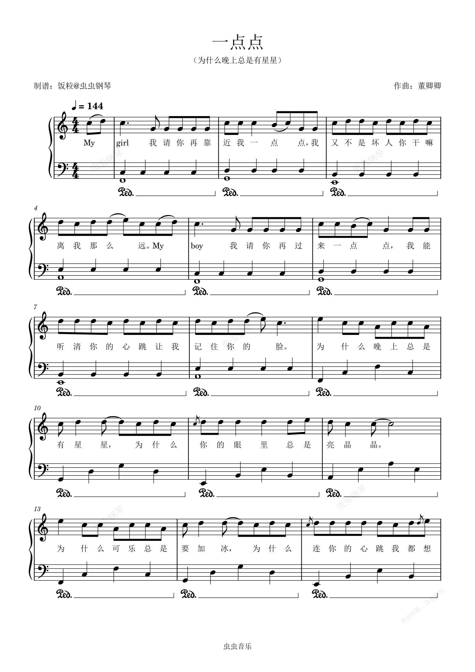 钢琴谱:一点点(原调)