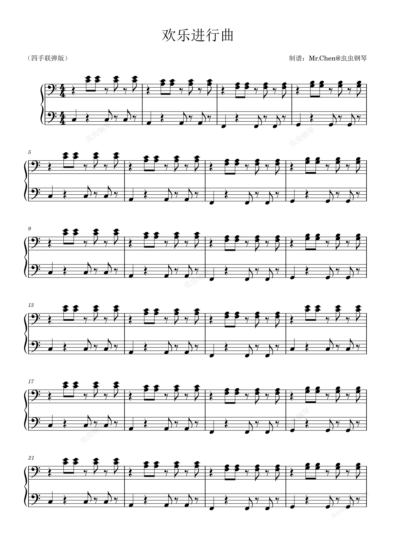 钢琴谱:欢乐进行曲低声部