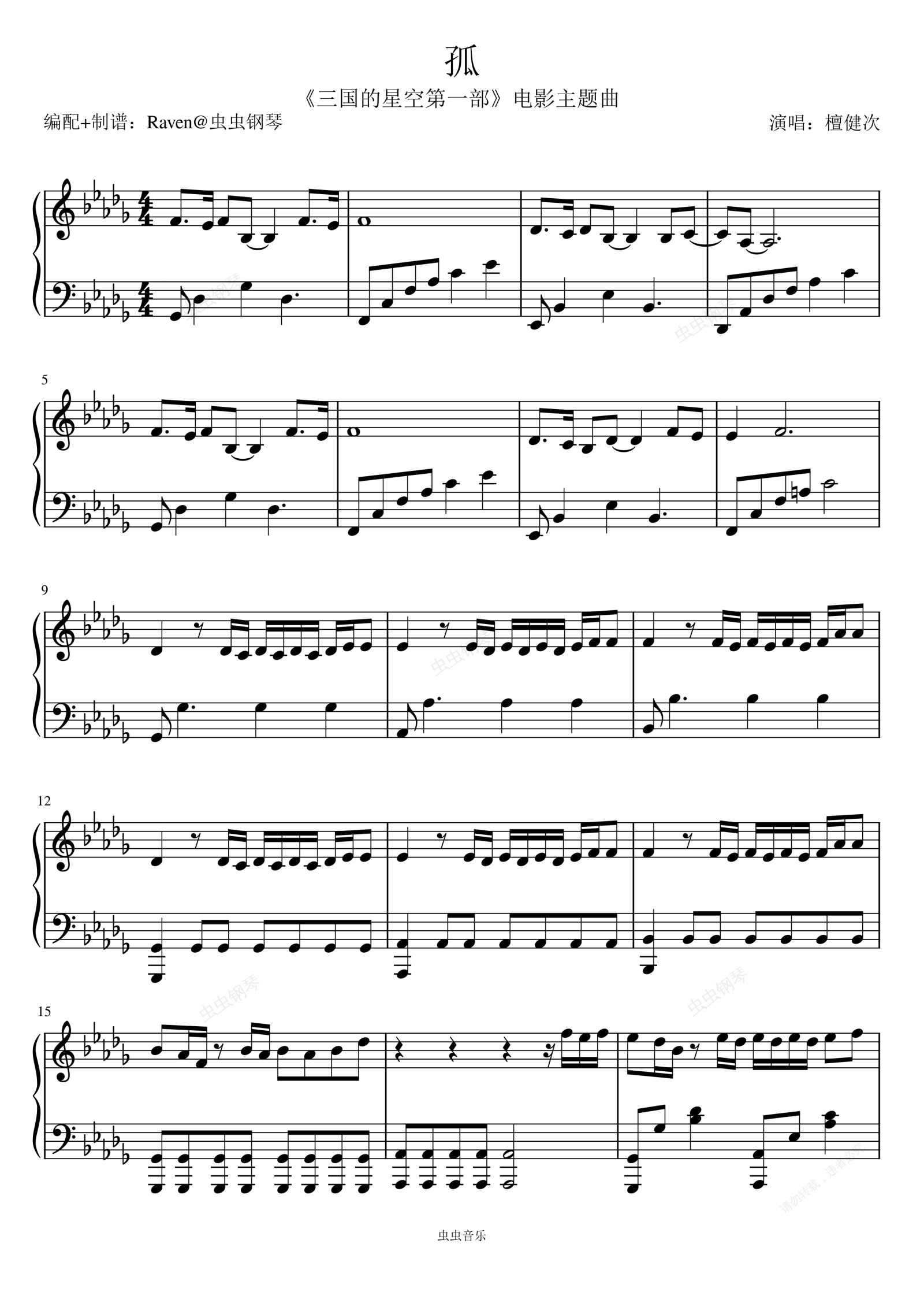 钢琴谱:孤 檀健次 钢琴高燃独奏