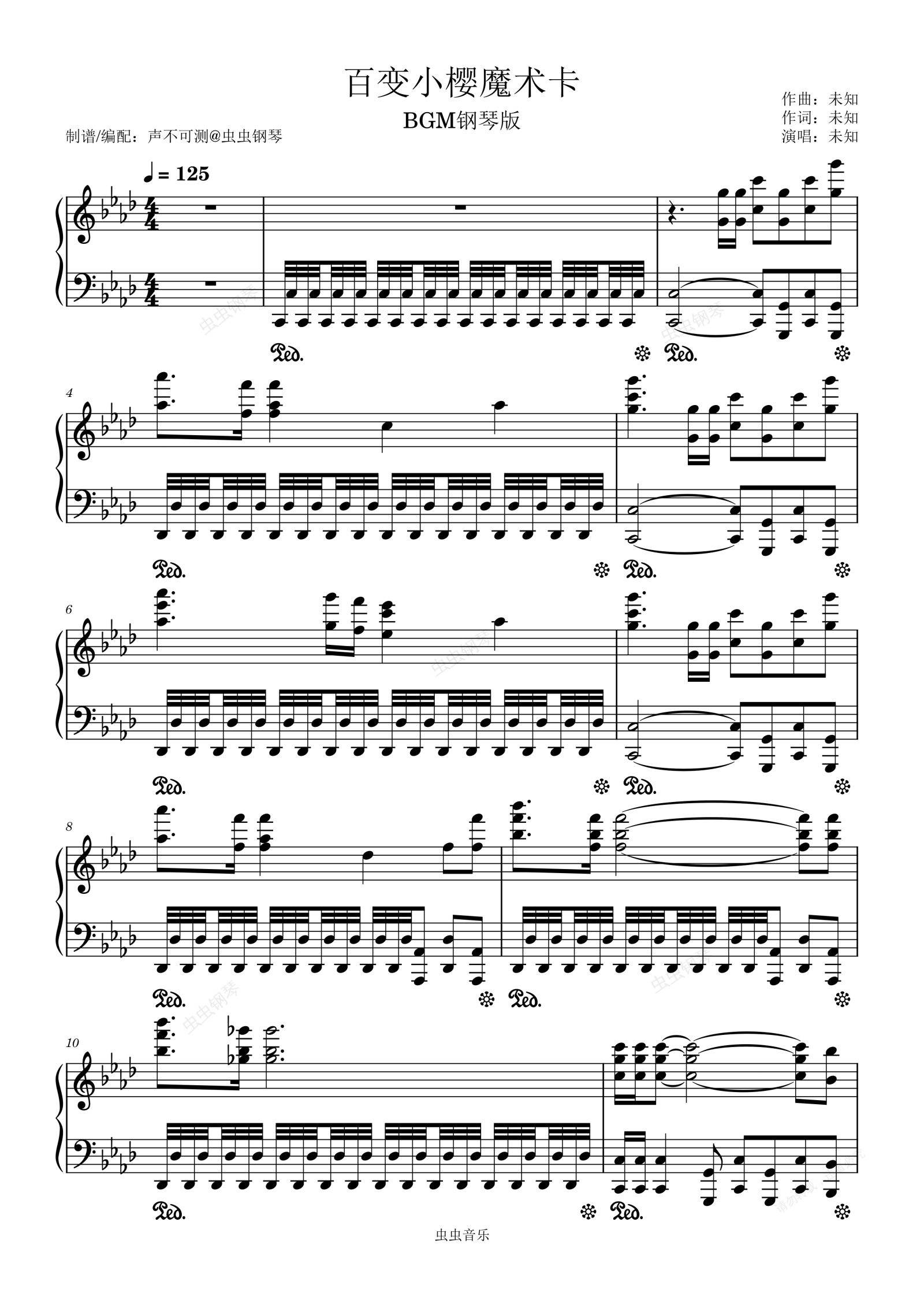 钢琴谱:百变小樱魔术卡BGM钢琴版 - 声不可测
